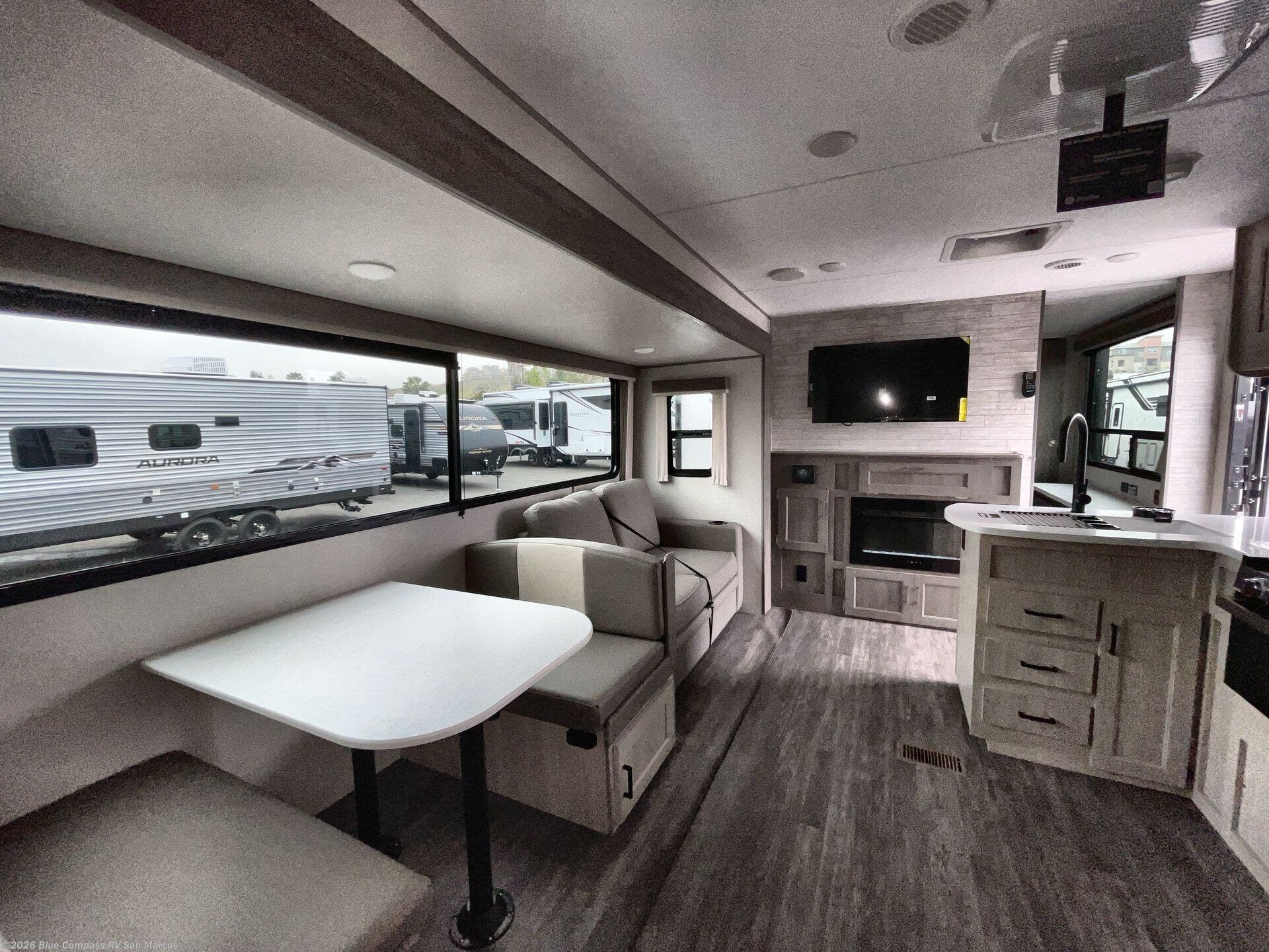 Comfortability, usability, and quality is what you will find in each one of these Forest River Aurora travel trailers, toy haulers or destination trailers! They are designed with a superior build and packed full with industry leading, functional, and distinctive standard features. SolidStep entrance steps and a Safe-T rail door assist on main entry door to help you safely enter and exit the unit. The diamond plate rock guard will protect your unit from road debris and the nitrogen filled radial tires, which keep their pressure longer, offer better fuel economy. You will also find upgraded JBL Elite exterior speakers outside, an electric awning with multicolor lights and remote, plus flush mount baggage doors for easy packing. The interiors are beautifully designed with a deep undermount farm style sink, stainless steel appliances, and linoleum flooring in the slide outs which will be easy to clean. Come find your favorite model today!