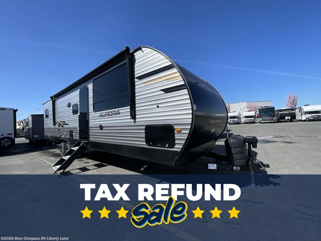Request More Info on this 2026 Forest River Aurora 34BHTS (2 Queen Beds) Offered for sale by Blue Compass RV Liberty Lake