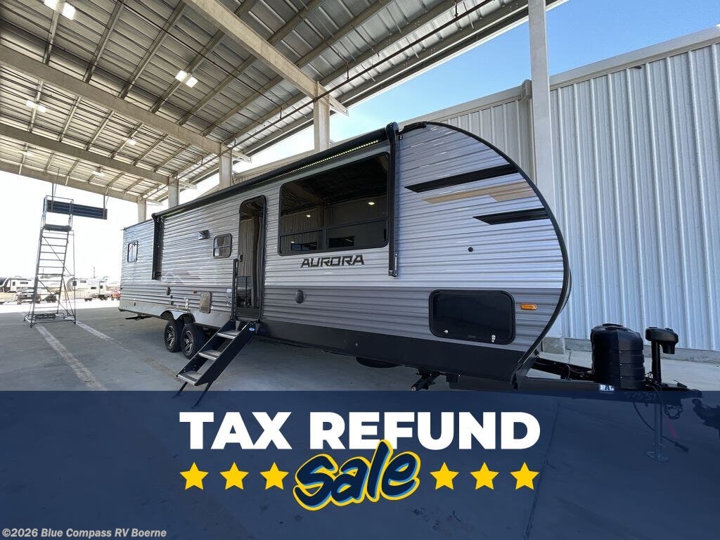 Request More Info on this 2026 Forest River Aurora 34BHTS (2 Queen Beds) Offered for sale by Blue Compass RV Boerne