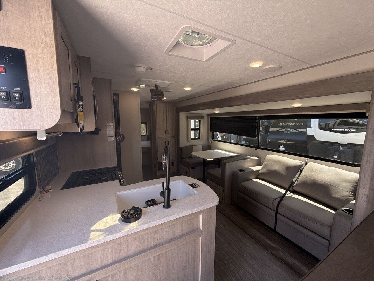 Comfortability, usability, and quality is what you will find in each one of these Forest River Aurora travel trailers, toy haulers or destination trailers! They are designed with a superior build and packed full with industry leading, functional, and distinctive standard features. SolidStep entrance steps and a Safe-T rail door assist on main entry door to help you safely enter and exit the unit. The diamond plate rock guard will protect your unit from road debris and the nitrogen filled radial tires, which keep their pressure longer, offer better fuel economy. You will also find upgraded JBL Elite exterior speakers outside, an electric awning with multicolor lights and remote, plus flush mount baggage doors for easy packing. The interiors are beautifully designed with a deep undermount farm style sink, stainless steel appliances, and linoleum flooring in the slide outs which will be easy to clean. Come find your favorite model today!