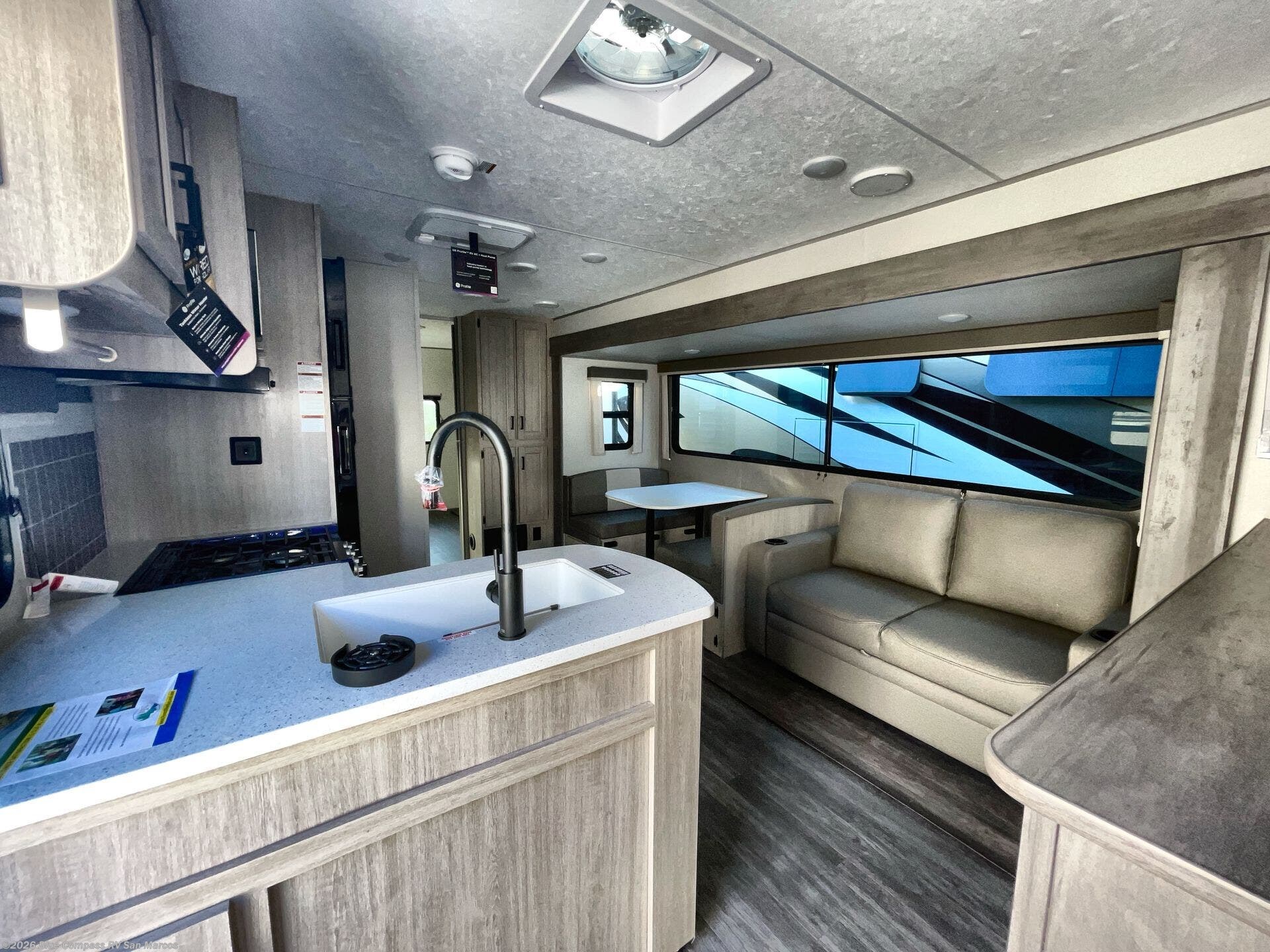 Comfortability, usability, and quality is what you will find in each one of these Forest River Aurora travel trailers, toy haulers or destination trailers! They are designed with a superior build and packed full with industry leading, functional, and distinctive standard features. SolidStep entrance steps and a Safe-T rail door assist on main entry door to help you safely enter and exit the unit. The diamond plate rock guard will protect your unit from road debris and the nitrogen filled radial tires, which keep their pressure longer, offer better fuel economy. You will also find upgraded JBL Elite exterior speakers outside, an electric awning with multicolor lights and remote, plus flush mount baggage doors for easy packing. The interiors are beautifully designed with a deep undermount farm style sink, stainless steel appliances, and linoleum flooring in the slide outs which will be easy to clean. Come find your favorite model today!