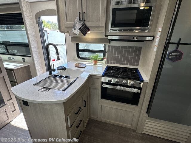 Comfortability, usability, and quality is what you will find in each one of these Forest River Aurora travel trailers, toy haulers or destination trailers! They are designed with a superior build and packed full with industry leading, functional, and distinctive standard features. SolidStep entrance steps and a Safe-T rail door assist on main entry door to help you safely enter and exit the unit. The diamond plate rock guard will protect your unit from road debris and the nitrogen filled radial tires, which keep their pressure longer, offer better fuel economy. You will also find upgraded JBL Elite exterior speakers outside, an electric awning with multicolor lights and remote, plus flush mount baggage doors for easy packing. The interiors are beautifully designed with a deep undermount farm style sink, stainless steel appliances, and linoleum flooring in the slide outs which will be easy to clean. Come find your favorite model today!