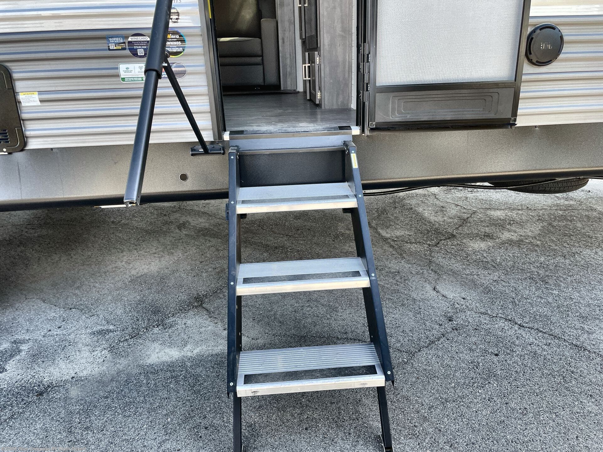 Comfortability, usability, and quality is what you will find in each one of these Forest River Aurora travel trailers, toy haulers or destination trailers! They are designed with a superior build and packed full with industry leading, functional, and distinctive standard features. SolidStep entrance steps and a Safe-T rail door assist on main entry door to help you safely enter and exit the unit. The diamond plate rock guard will protect your unit from road debris and the nitrogen filled radial tires, which keep their pressure longer, offer better fuel economy. You will also find upgraded JBL Elite exterior speakers outside, an electric awning with multicolor lights and remote, plus flush mount baggage doors for easy packing. The interiors are beautifully designed with a deep undermount farm style sink, stainless steel appliances, and linoleum flooring in the slide outs which will be easy to clean. Come find your favorite model today!