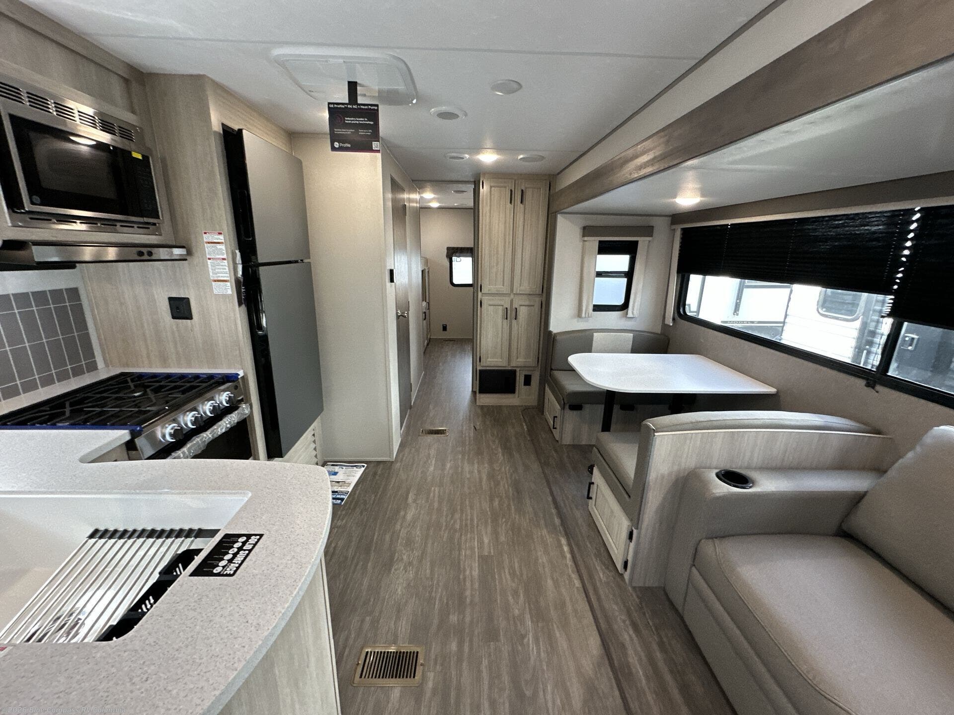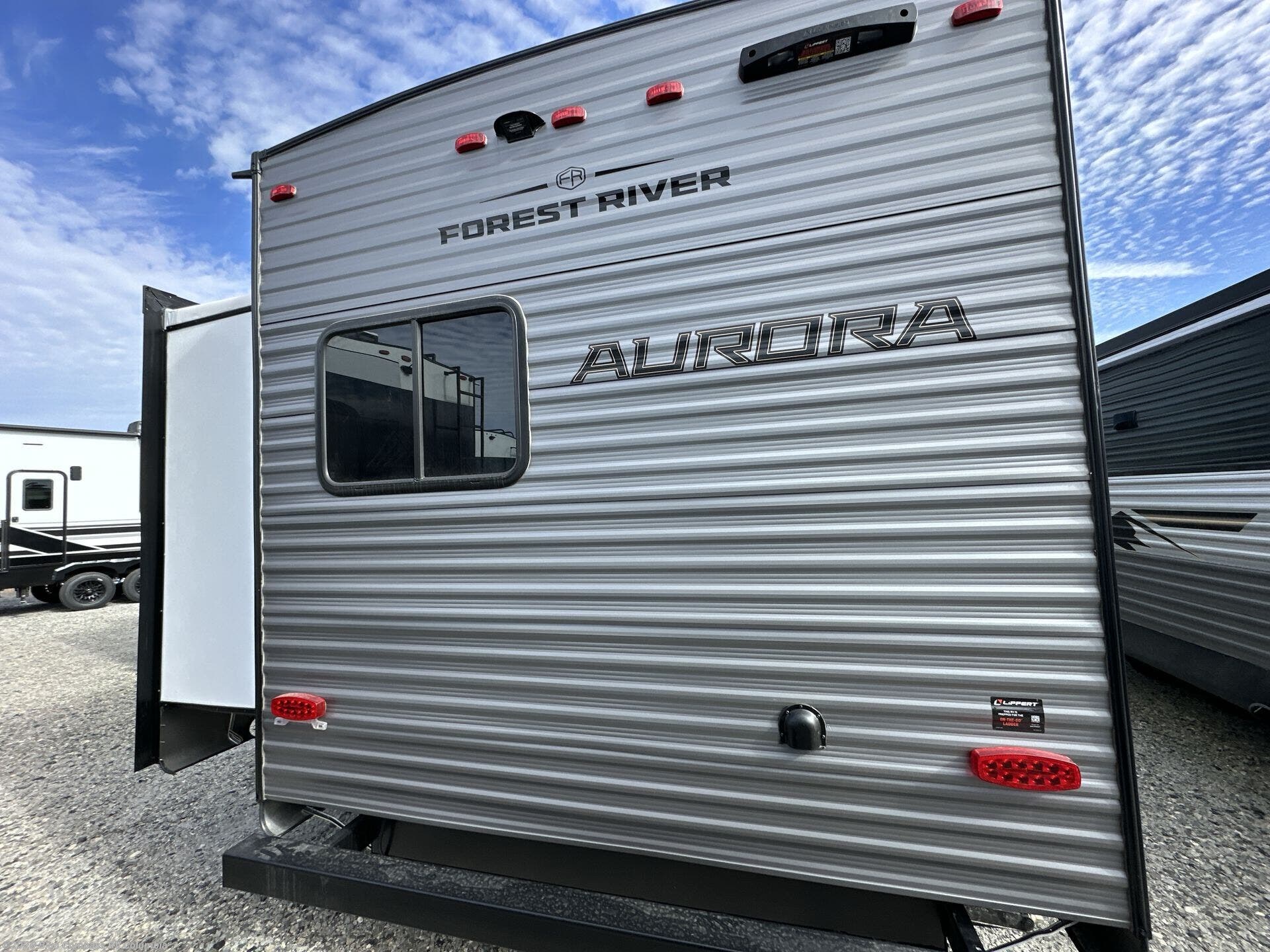Comfortability, usability, and quality is what you will find in each one of these Forest River Aurora travel trailers, toy haulers or destination trailers! They are designed with a superior build and packed full with industry leading, functional, and distinctive standard features. SolidStep entrance steps and a Safe-T rail door assist on main entry door to help you safely enter and exit the unit. The diamond plate rock guard will protect your unit from road debris and the nitrogen filled radial tires, which keep their pressure longer, offer better fuel economy. You will also find upgraded JBL Elite exterior speakers outside, an electric awning with multicolor lights and remote, plus flush mount baggage doors for easy packing. The interiors are beautifully designed with a deep undermount farm style sink, stainless steel appliances, and linoleum flooring in the slide outs which will be easy to clean. Come find your favorite model today!