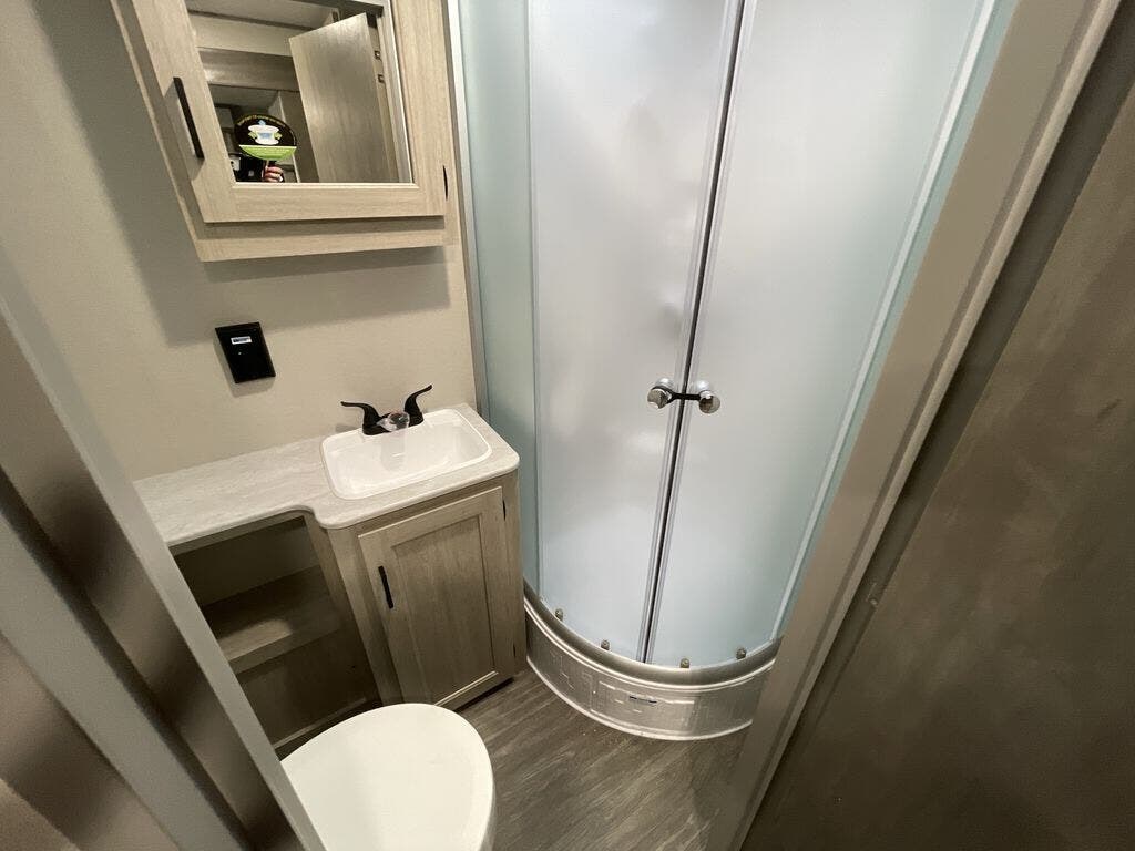 Comfortability, usability, and quality is what you will find in each one of these Forest River Aurora travel trailers, toy haulers or destination trailers! They are designed with a superior build and packed full with industry leading, functional, and distinctive standard features. SolidStep entrance steps and a Safe-T rail door assist on main entry door to help you safely enter and exit the unit. The diamond plate rock guard will protect your unit from road debris and the nitrogen filled radial tires, which keep their pressure longer, offer better fuel economy. You will also find upgraded JBL Elite exterior speakers outside, an electric awning with multicolor lights and remote, plus flush mount baggage doors for easy packing. The interiors are beautifully designed with a deep undermount farm style sink, stainless steel appliances, and linoleum flooring in the slide outs which will be easy to clean. Come find your favorite model today!