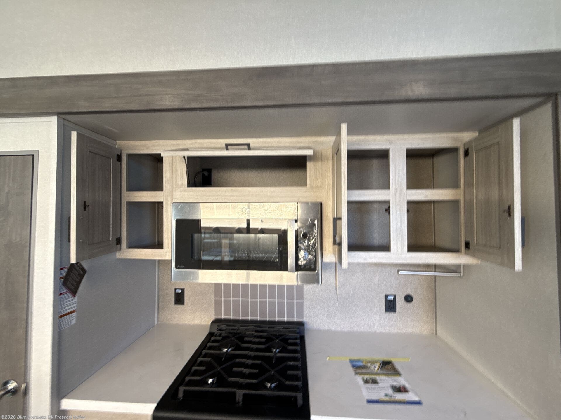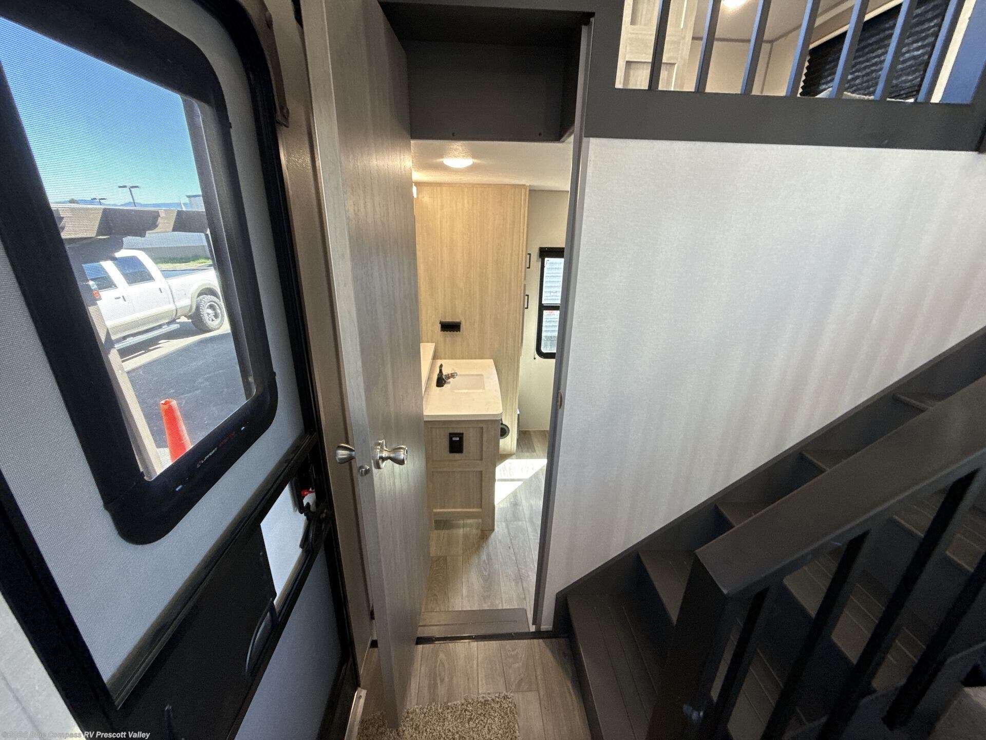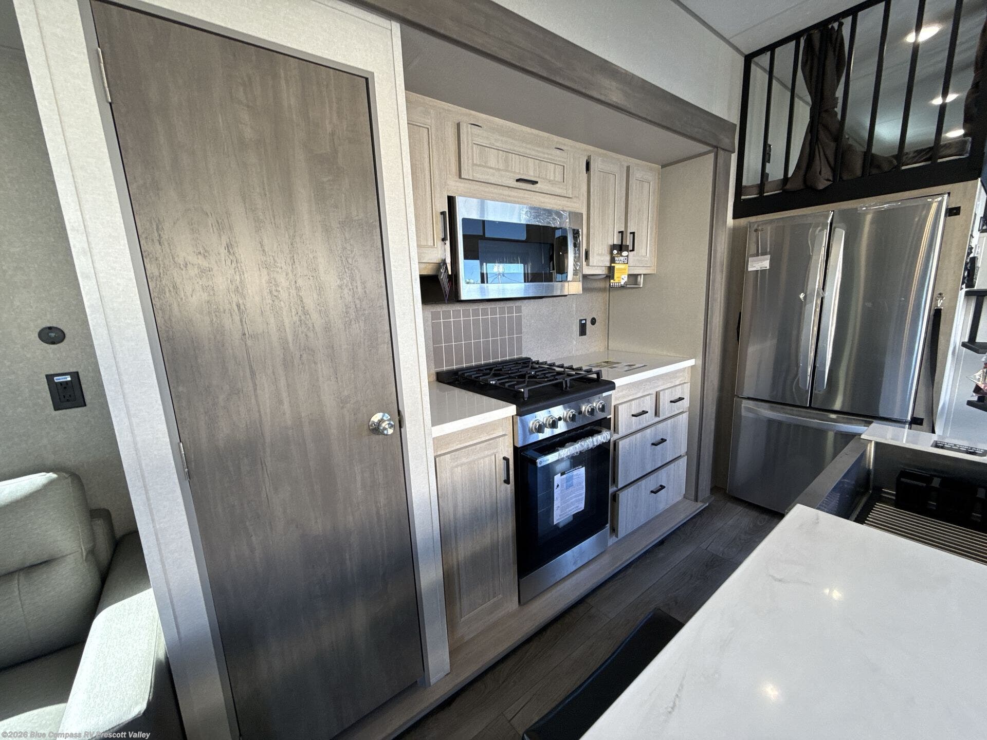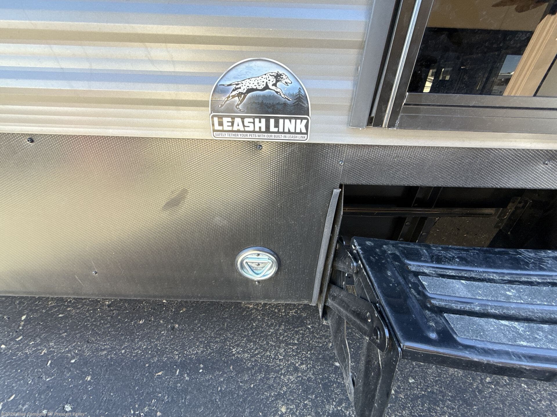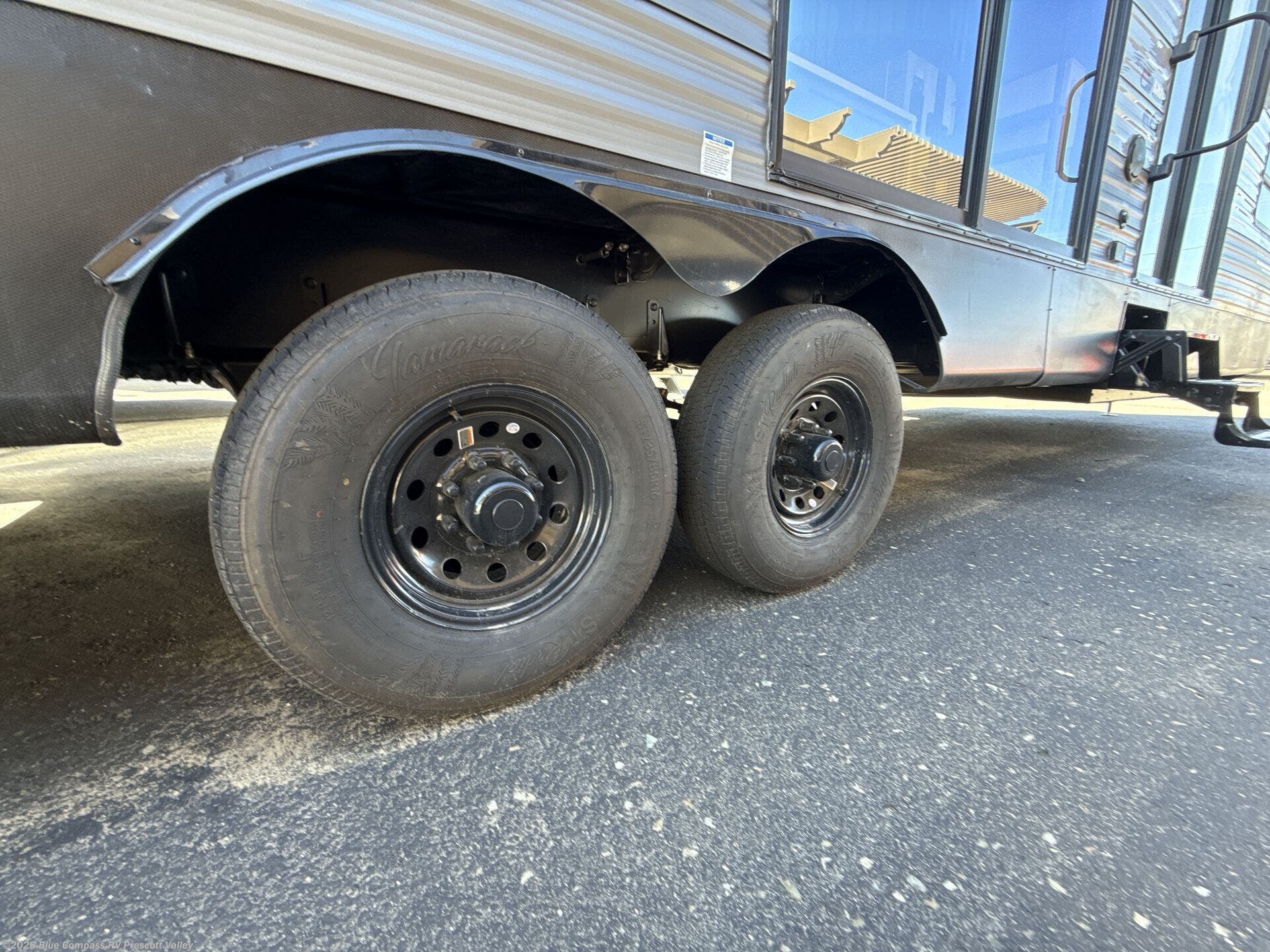 You won't believe the amount of comfort found throughout this destination trailer! The front private bedroom will provide you with your own space each night, and here you'll enjoy the RV queen bed slide out, wardrobe closets and a dresser, plus a bedroom fireplace for more comfort. The main living area is made spacious thanks to the large slide out, and the kitchen island with five bar stools will be the perfect place to dine together each day. There is also a hide-a-bed sectional sofa everyone is sure to enjoy relaxing on, and the power lift TV means you can make it a movie night! A spacious full rear bath includes a 48" x 30" shower with a seat and glass shower door and plenty of storage space to keep clean towels and bath necessities stocked. The feature you will really love on this trailer has to be the double loft areas, complete with five bunk mats in total and storage space for your guests' things; how convenient!