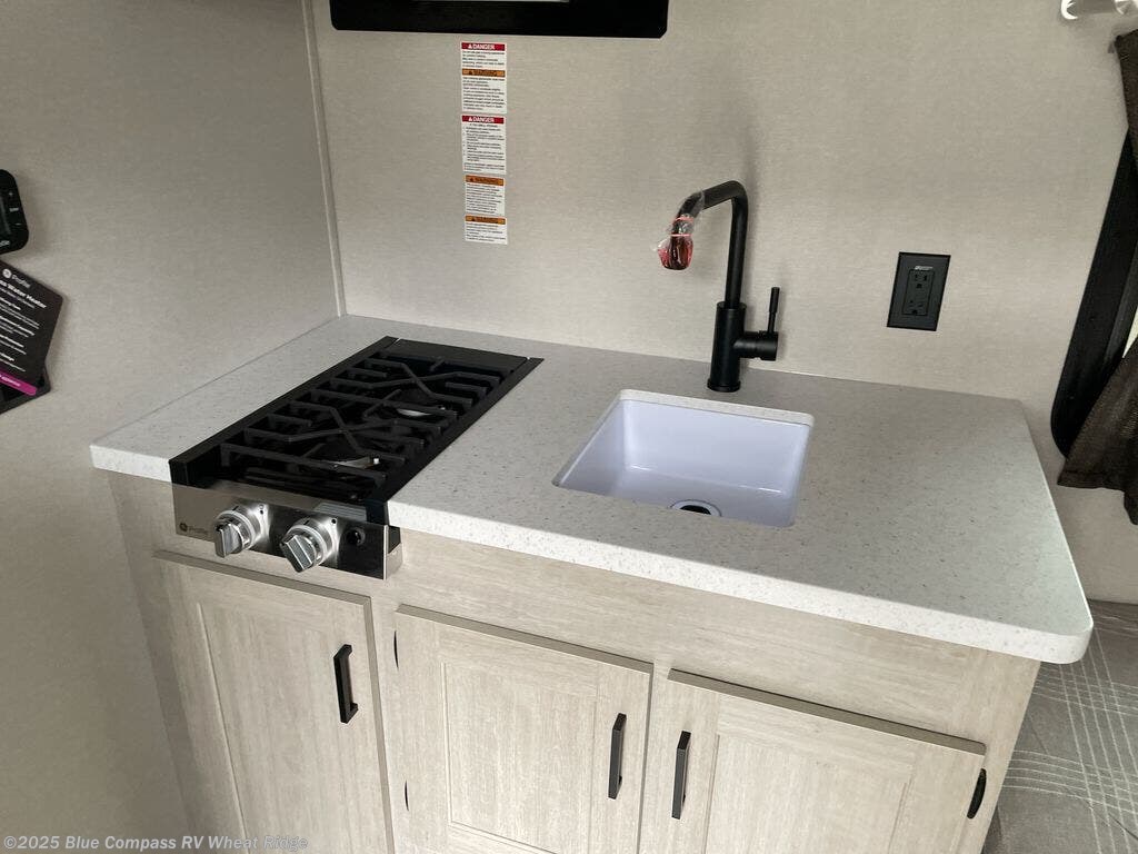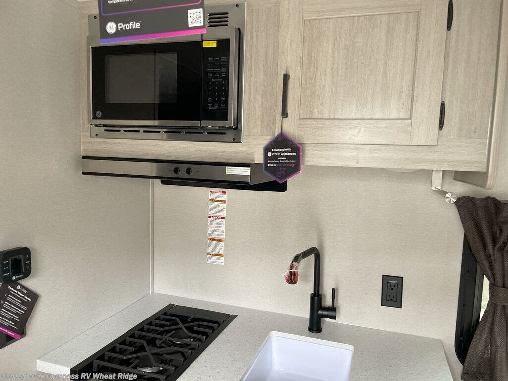 Comfortability, usability, and quality is what you will find in each one of these Forest River Aurora Light travel trailers! They are designed with a superior build and packed full with industry leading, functional, and distinctive standard features. The diamond plate rock guard will protect your unit from road debris and the nitrogen filled radial tires, which keep their pressure longer, offer better fuel economy. You will also find upgraded JBL Elite exterior speaker outside, an electric awning with multicolor lights and remote, plus flush mount baggage doors for easy packing. The interiors are beautifully designed with matte black kitchen and bath faucets, black nightshades in the living room, and GE kitchen appliances!