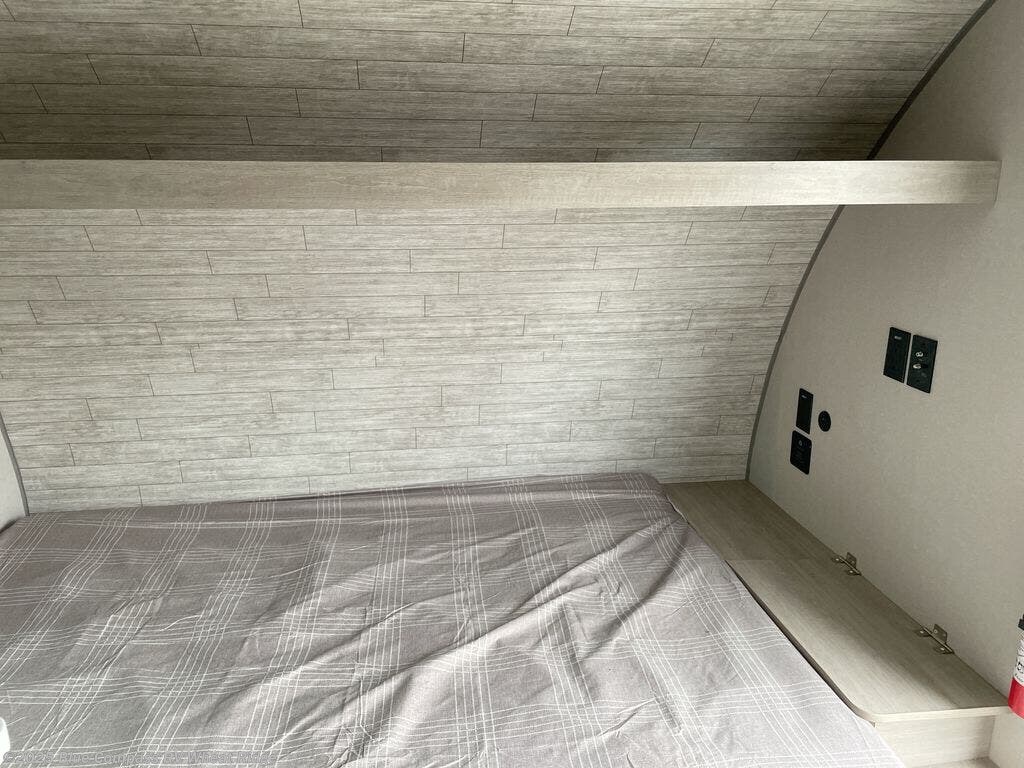 This lightweight travel trailer includes everything you need for comfortable camping trips at the lake. You can make your meals on the two burner cooktop or in the stainless steel microwave, and a 3.3 cu. ft. 12V refrigerator will keep leftovers fresh. A front queen bed provides a great night's rest, and there are 29" x 70" bunk beds for your guests or little ones. And a private bath with a 24" x 32" shower and toilet will let you easily freshen up without having to use the camp's facilities!