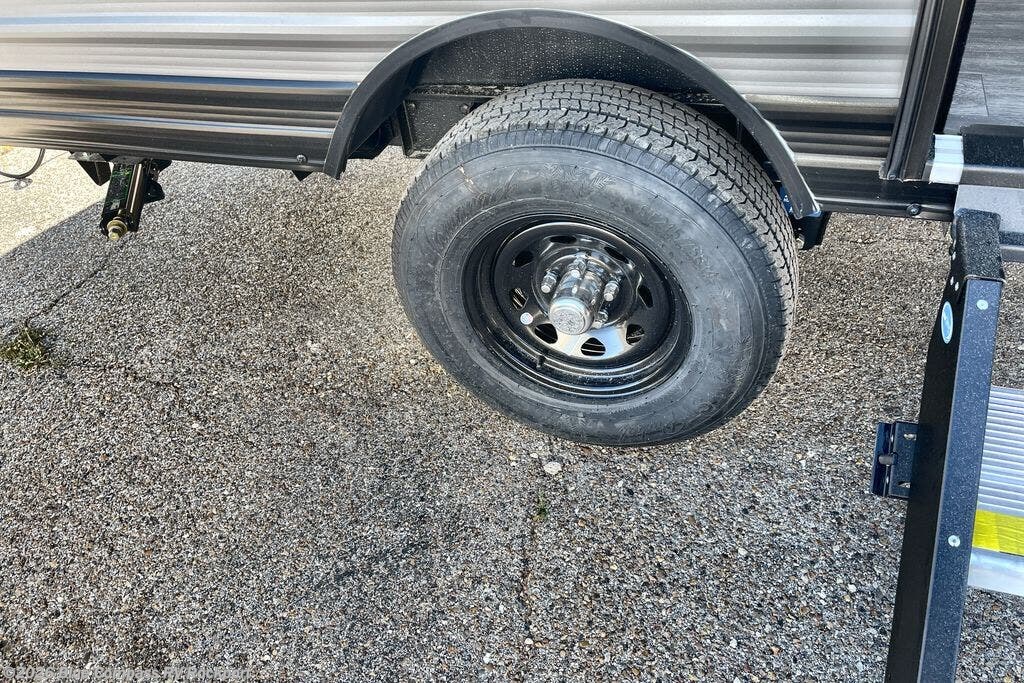 This lightweight travel trailer includes everything you need for comfortable camping trips at the lake. You can make your meals on the two burner cooktop or in the stainless steel microwave, and a 3.3 cu. ft. 12V refrigerator will keep leftovers fresh. A front queen bed provides a great night's rest, and there are 29" x 70" bunk beds for your guests or little ones. And a private bath with a 24" x 32" shower and toilet will let you easily freshen up without having to use the camp's facilities!
