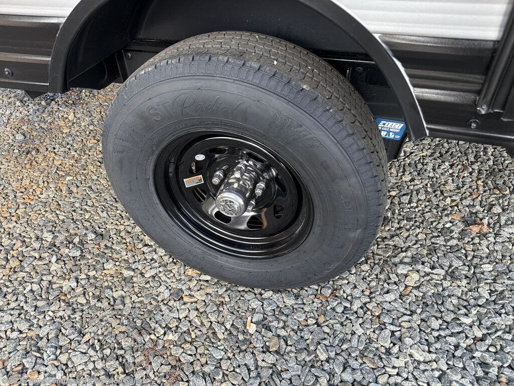 This lightweight travel trailer includes everything you need for comfortable camping trips at the lake. You can make your meals on the two burner cooktop or in the stainless steel microwave, and a 3.3 cu. ft. 12V refrigerator will keep leftovers fresh. A front queen bed provides a great night's rest, and there are 29" x 70" bunk beds for your guests or little ones. And a private bath with a 24" x 32" shower and toilet will let you easily freshen up without having to use the camp's facilities!