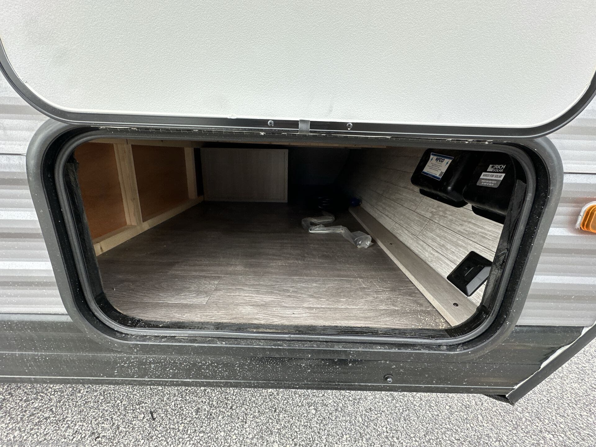 Comfortability, usability, and quality is what you will find in each one of these Forest River Aurora Light travel trailers! They are designed with a superior build and packed full with industry leading, functional, and distinctive standard features. The diamond plate rock guard will protect your unit from road debris and the nitrogen filled radial tires, which keep their pressure longer, offer better fuel economy. You will also find upgraded JBL Elite exterior speaker outside, an electric awning with multicolor lights and remote, plus flush mount baggage doors for easy packing. The interiors are beautifully designed with matte black kitchen and bath faucets, black nightshades in the living room, and GE kitchen appliances!