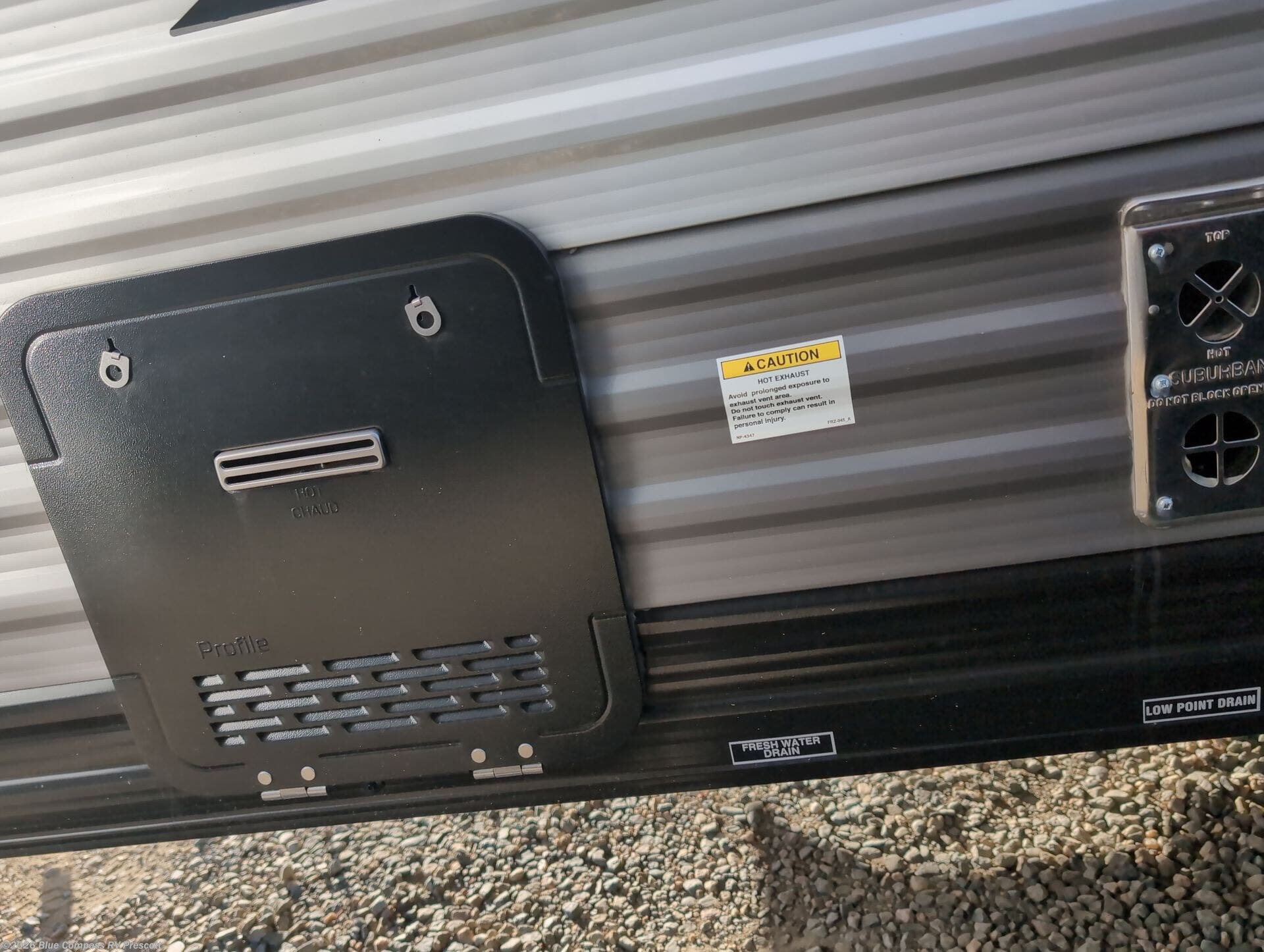 This lightweight travel trailer includes everything you need for comfortable camping trips at the lake. You can make your meals on the two burner cooktop or in the stainless steel microwave, and a 3.3 cu. ft. 12V refrigerator will keep leftovers fresh. A front queen bed provides a great night's rest, and there are 29" x 70" bunk beds for your guests or little ones. And a private bath with a 24" x 32" shower and toilet will let you easily freshen up without having to use the camp's facilities!