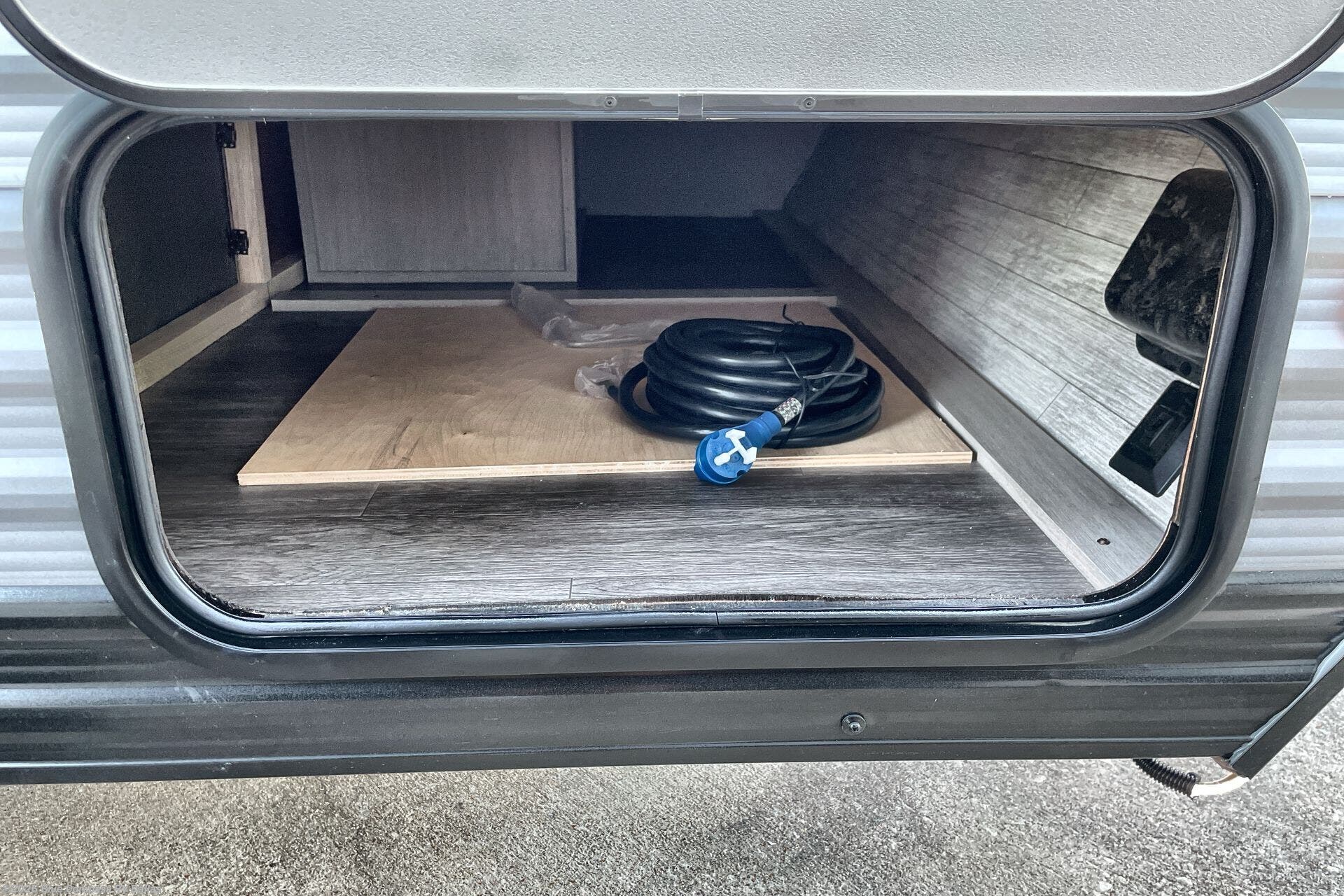 This lightweight travel trailer includes everything you need for comfortable camping trips at the lake. You can make your meals on the two burner cooktop or in the stainless steel microwave, and a 3.3 cu. ft. 12V refrigerator will keep leftovers fresh. A front queen bed provides a great night's rest, and there is a 29" booth dinette that will double as both dining and additional sleeping space. And a private bath with a 24" x 32" shower and toilet will let you easily freshen up without having to use the camp's facilities!
