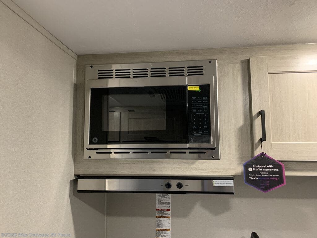 Comfortability, usability, and quality is what you will find in each one of these Forest River Aurora Light travel trailers! They are designed with a superior build and packed full with industry leading, functional, and distinctive standard features. The diamond plate rock guard will protect your unit from road debris and the nitrogen filled radial tires, which keep their pressure longer, offer better fuel economy. You will also find upgraded JBL Elite exterior speaker outside, an electric awning with multicolor lights and remote, plus flush mount baggage doors for easy packing. The interiors are beautifully designed with matte black kitchen and bath faucets, black nightshades in the living room, and GE kitchen appliances!
