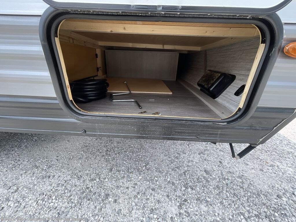 Comfortability, usability, and quality is what you will find in each one of these Forest River Aurora Light travel trailers! They are designed with a superior build and packed full with industry leading, functional, and distinctive standard features. The diamond plate rock guard will protect your unit from road debris and the nitrogen filled radial tires, which keep their pressure longer, offer better fuel economy. You will also find upgraded JBL Elite exterior speaker outside, an electric awning with multicolor lights and remote, plus flush mount baggage doors for easy packing. The interiors are beautifully designed with matte black kitchen and bath faucets, black nightshades in the living room, and GE kitchen appliances!