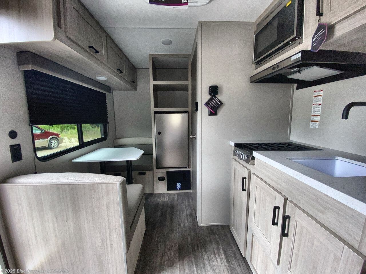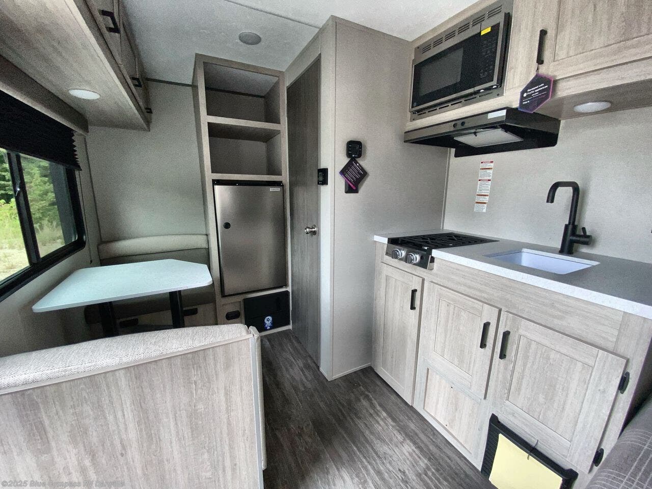This lightweight travel trailer includes everything you need for comfortable camping trips at the lake. You can make your meals on the two burner cooktop or in the stainless steel microwave, and a 3.3 cu. ft. 12V refrigerator will keep leftovers fresh. A front queen bed provides a great night's rest, and there is a 29" booth dinette that will double as both dining and additional sleeping space. And a private bath with a 24" x 32" shower and toilet will let you easily freshen up without having to use the camp's facilities!
