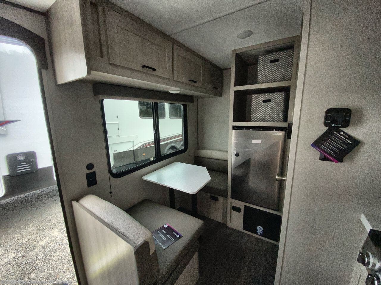 This lightweight travel trailer includes everything you need for comfortable camping trips at the lake. You can make your meals on the two burner cooktop or in the stainless steel microwave, and a 3.3 cu. ft. 12V refrigerator will keep leftovers fresh. A front queen bed provides a great night's rest, and there is a 29" booth dinette that will double as both dining and additional sleeping space. And a private bath with a 24" x 32" shower and toilet will let you easily freshen up without having to use the camp's facilities!