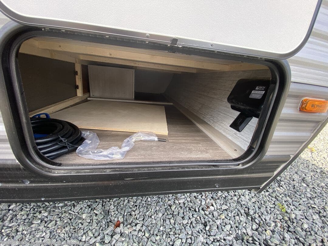 Comfortability, usability, and quality is what you will find in each one of these Forest River Aurora Light travel trailers! They are designed with a superior build and packed full with industry leading, functional, and distinctive standard features. The diamond plate rock guard will protect your unit from road debris and the nitrogen filled radial tires, which keep their pressure longer, offer better fuel economy. You will also find upgraded JBL Elite exterior speaker outside, an electric awning with multicolor lights and remote, plus flush mount baggage doors for easy packing. The interiors are beautifully designed with matte black kitchen and bath faucets, black nightshades in the living room, and GE kitchen appliances!