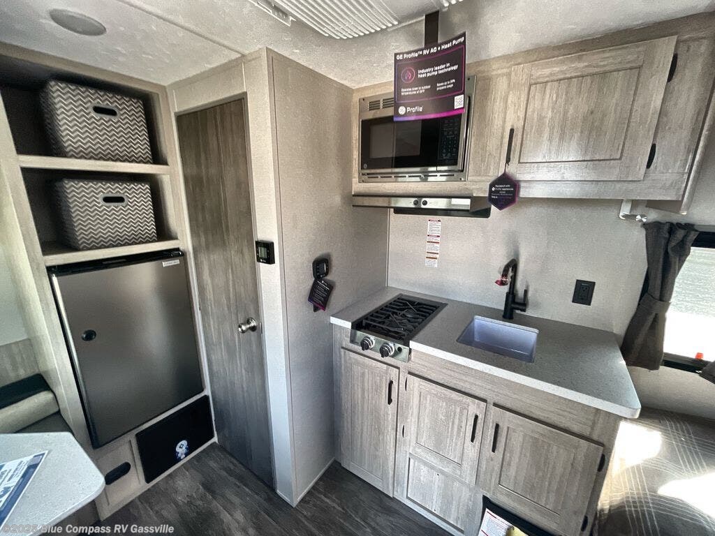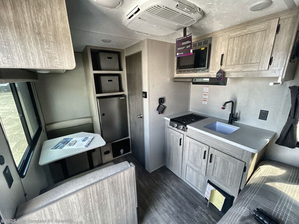 This lightweight travel trailer includes everything you need for comfortable camping trips at the lake. You can make your meals on the two burner cooktop or in the stainless steel microwave, and a 3.3 cu. ft. 12V refrigerator will keep leftovers fresh. A front queen bed provides a great night's rest, and there is a 29" booth dinette that will double as both dining and additional sleeping space. And a private bath with a 24" x 32" shower and toilet will let you easily freshen up without having to use the camp's facilities!
