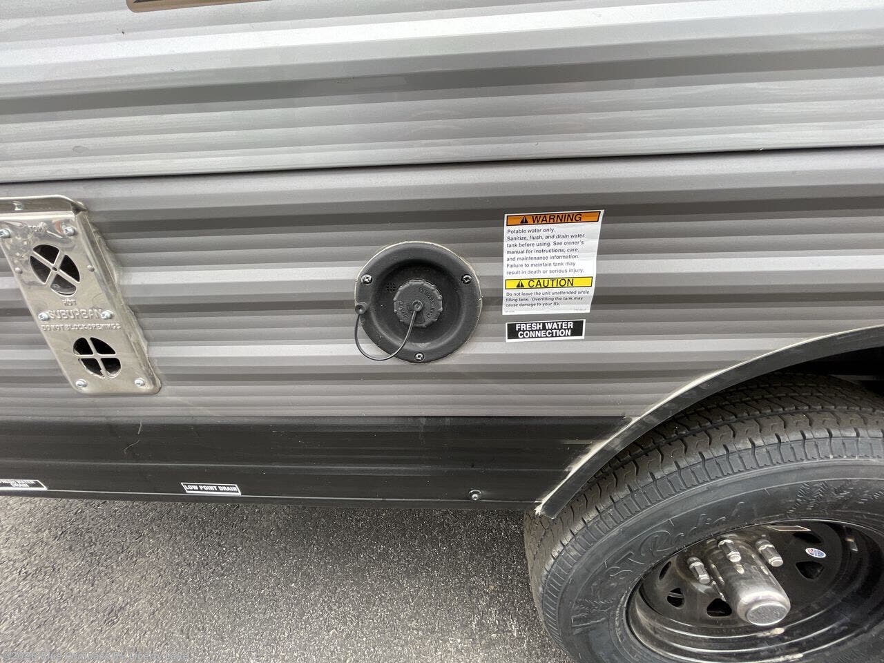 This lightweight travel trailer includes everything you need for comfortable camping trips at the lake. You can make your meals on the two burner cooktop or in the stainless steel microwave, and a 3.3 cu. ft. 12V refrigerator will keep leftovers fresh. A front queen bed provides a great night's rest, and there is a 29" booth dinette that will double as both dining and additional sleeping space. And a private bath with a 24" x 32" shower and toilet will let you easily freshen up without having to use the camp's facilities!