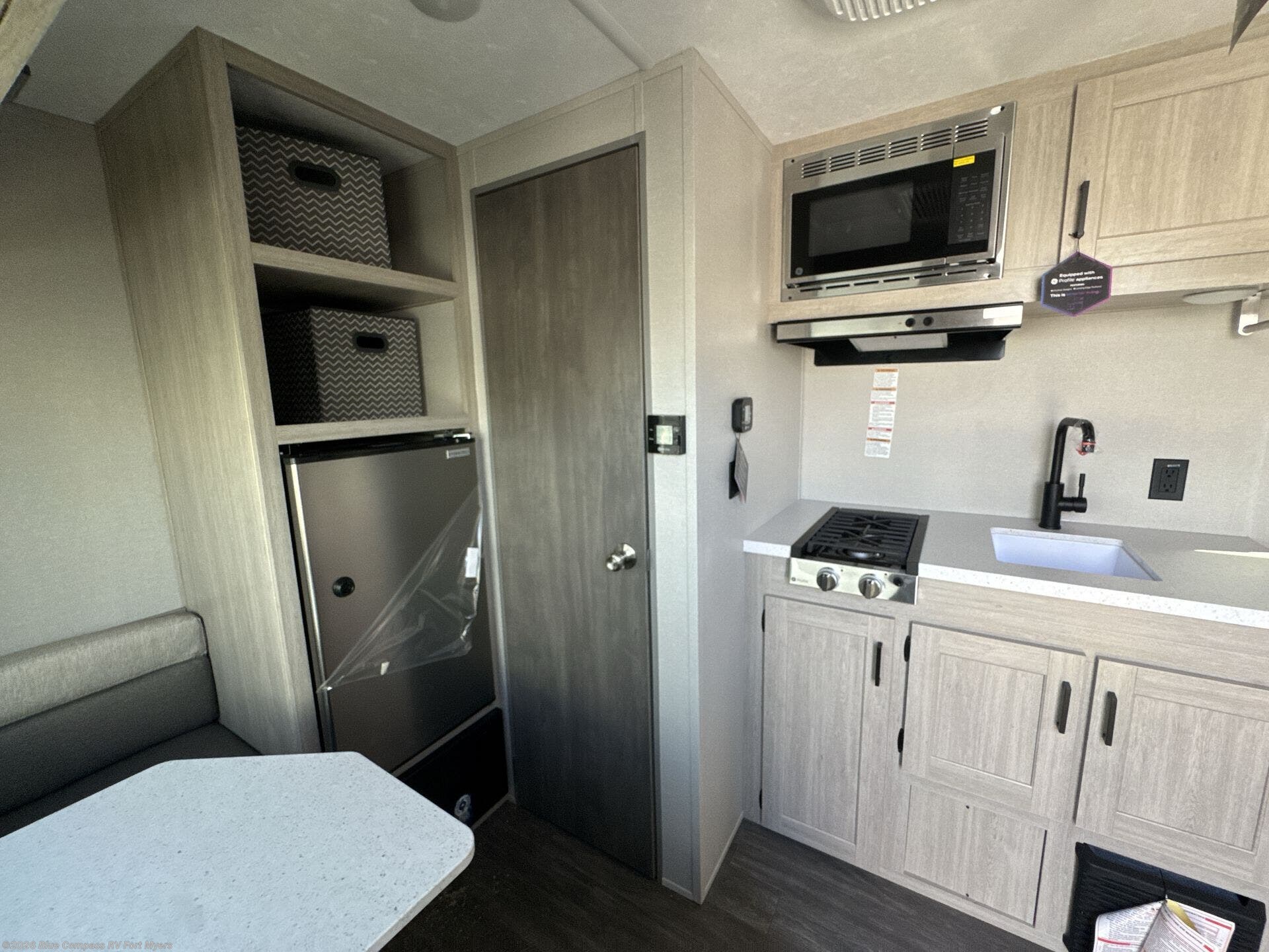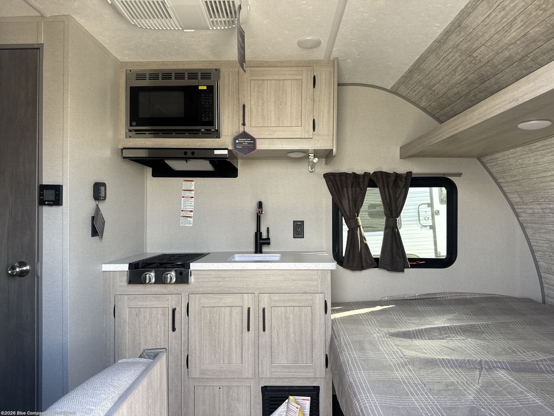 This lightweight travel trailer includes everything you need for comfortable camping trips at the lake. You can make your meals on the two burner cooktop or in the stainless steel microwave, and a 3.3 cu. ft. 12V refrigerator will keep leftovers fresh. A front queen bed provides a great night's rest, and there is a 29" booth dinette that will double as both dining and additional sleeping space. And a private bath with a 24" x 32" shower and toilet will let you easily freshen up without having to use the camp's facilities!