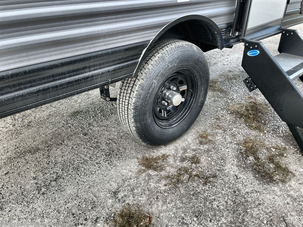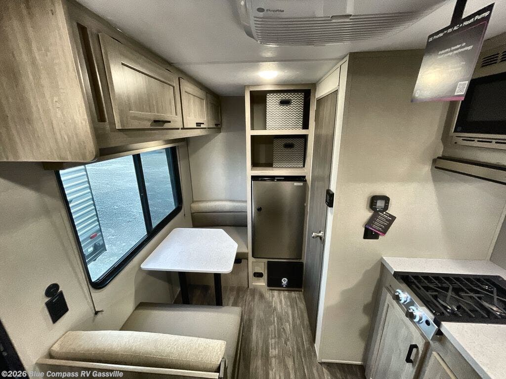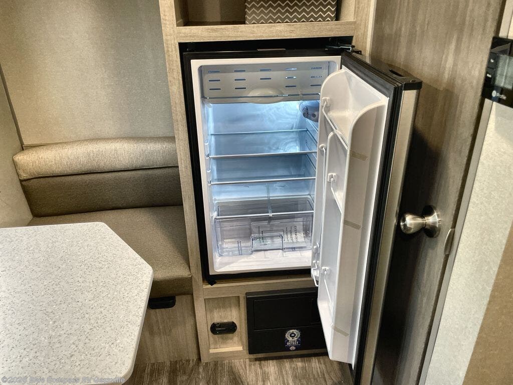 This lightweight travel trailer includes everything you need for comfortable camping trips at the lake. You can make your meals on the two burner cooktop or in the stainless steel microwave, and a 3.3 cu. ft. 12V refrigerator will keep leftovers fresh. A front queen bed provides a great night's rest, and there is a 29" booth dinette that will double as both dining and additional sleeping space. And a private bath with a 24" x 32" shower and toilet will let you easily freshen up without having to use the camp's facilities!