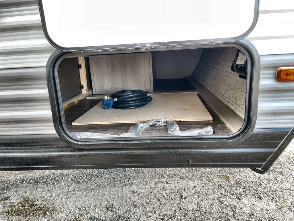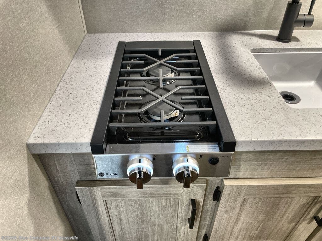 Comfortability, usability, and quality is what you will find in each one of these Forest River Aurora Light travel trailers! They are designed with a superior build and packed full with industry leading, functional, and distinctive standard features. The diamond plate rock guard will protect your unit from road debris and the nitrogen filled radial tires, which keep their pressure longer, offer better fuel economy. You will also find upgraded JBL Elite exterior speaker outside, an electric awning with multicolor lights and remote, plus flush mount baggage doors for easy packing. The interiors are beautifully designed with matte black kitchen and bath faucets, black nightshades in the living room, and GE kitchen appliances!