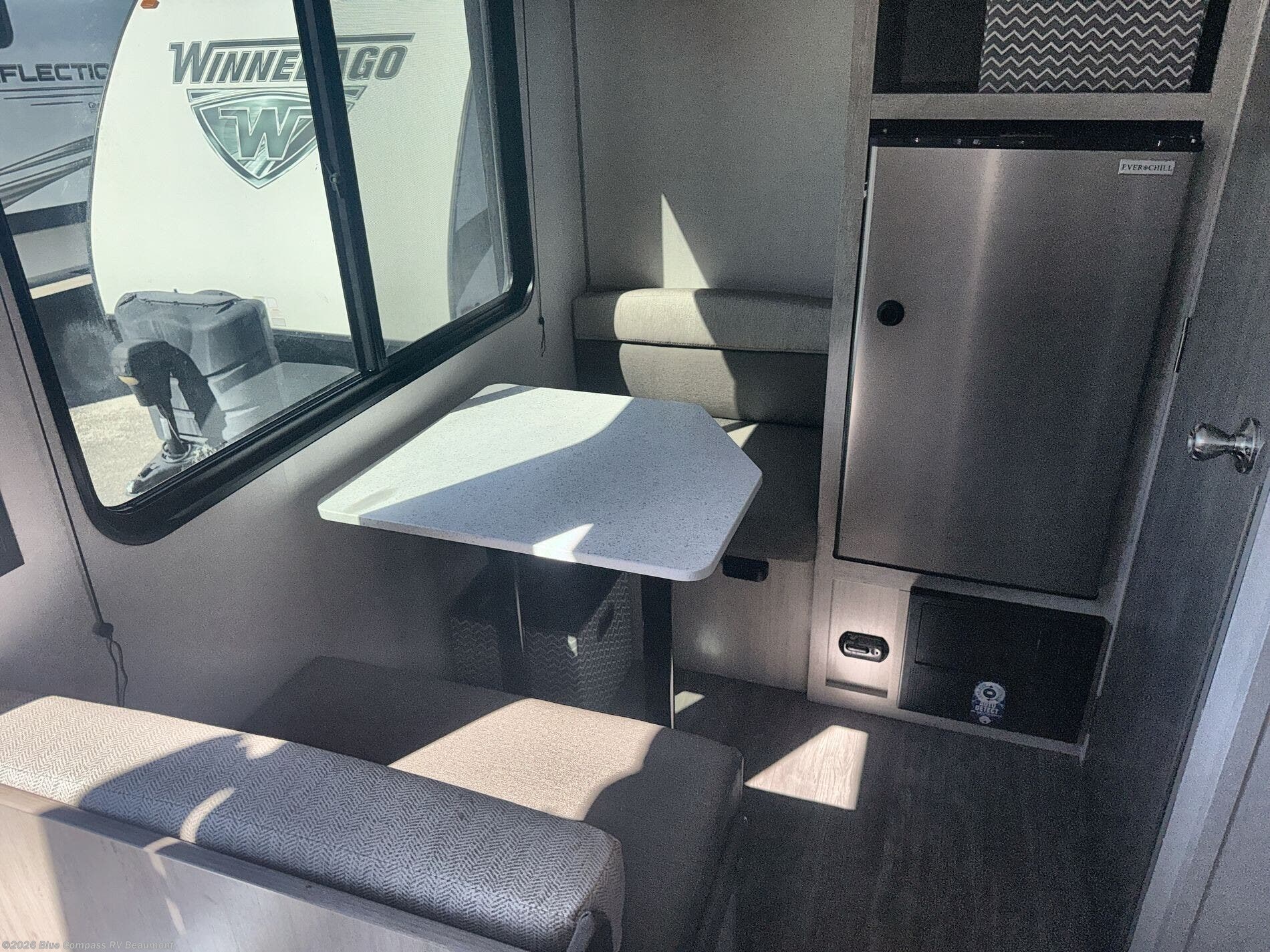 This lightweight travel trailer includes everything you need for comfortable camping trips at the lake. You can make your meals on the two burner cooktop or in the stainless steel microwave, and a 3.3 cu. ft. 12V refrigerator will keep leftovers fresh. A front queen bed provides a great night's rest, and there is a 29" booth dinette that will double as both dining and additional sleeping space. And a private bath with a 24" x 32" shower and toilet will let you easily freshen up without having to use the camp's facilities!