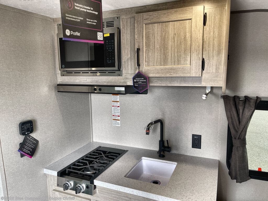This lightweight travel trailer includes everything you need for comfortable camping trips at the lake. You can make your meals on the two burner cooktop or in the stainless steel microwave, and a 3.3 cu. ft. 12V refrigerator will keep leftovers fresh. A front queen bed provides a great night's rest, and there is a 29" booth dinette that will double as both dining and additional sleeping space. And a private bath with a 24" x 32" shower and toilet will let you easily freshen up without having to use the camp's facilities!