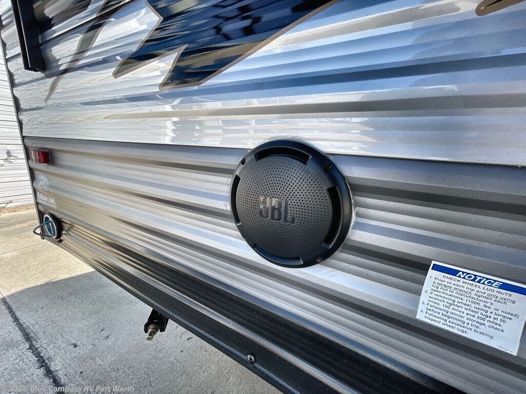Comfortability, usability, and quality is what you will find in each one of these Forest River Aurora Light travel trailers! They are designed with a superior build and packed full with industry leading, functional, and distinctive standard features. The diamond plate rock guard will protect your unit from road debris and the nitrogen filled radial tires, which keep their pressure longer, offer better fuel economy. You will also find upgraded JBL Elite exterior speaker outside, an electric awning with multicolor lights and remote, plus flush mount baggage doors for easy packing. The interiors are beautifully designed with matte black kitchen and bath faucets, black nightshades in the living room, and GE kitchen appliances!