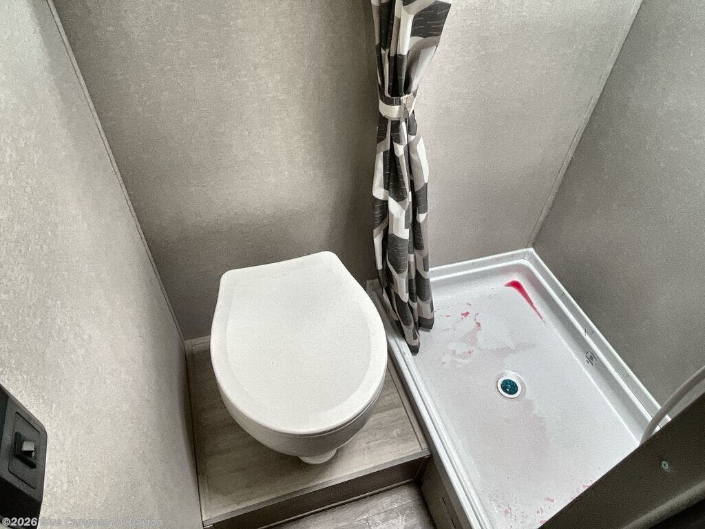 This lightweight travel trailer includes everything you need for comfortable camping trips at the lake. A front queen bed provides a great night's rest, and there is a 60" jack knife sofa for an overnight guest. You'll appreciate the bedroom storage and overhead shelf, along with an overhead shelf with bins over the sofa to keep your space tidy. The rear corner kitchen includes a two burner gas range and microwave oven, and the private bath is conveniently located in the other rear corner!