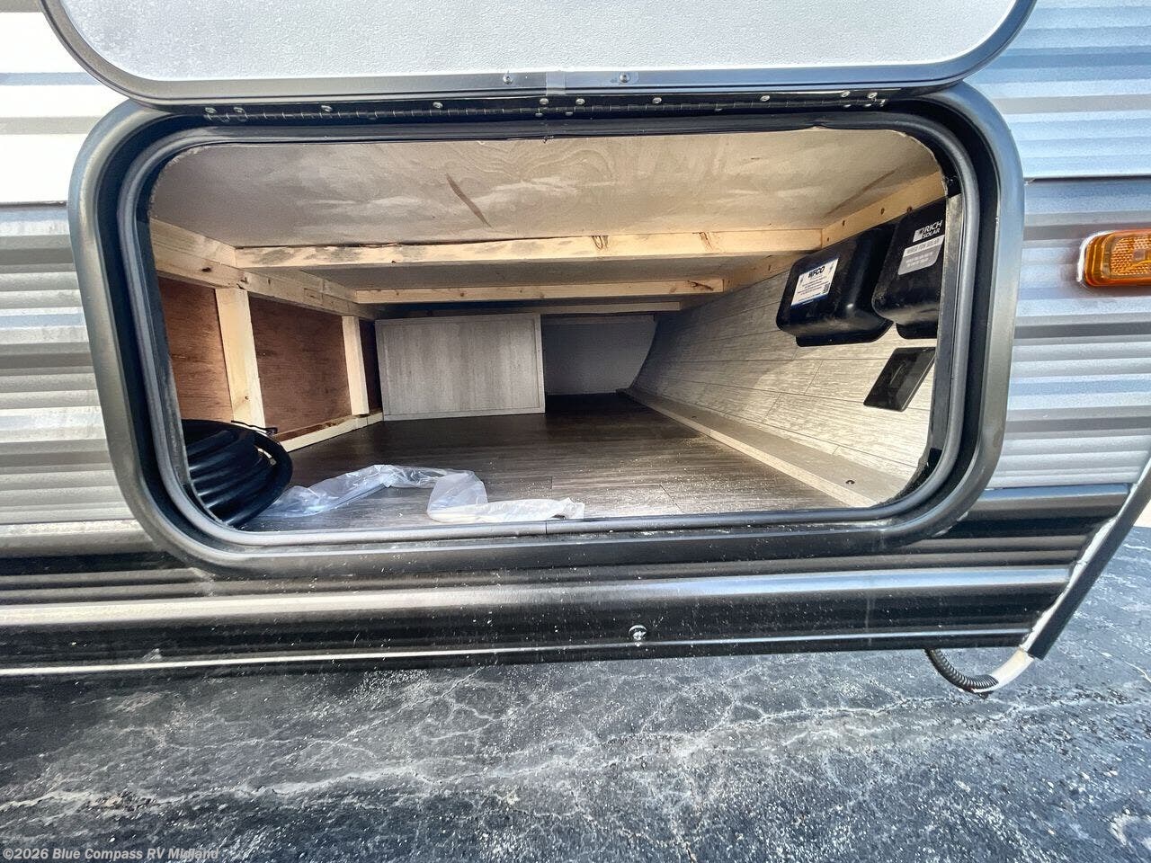 This lightweight travel trailer includes everything you need for comfortable camping trips at the lake. A front queen bed provides a great night's rest, and there is a 60" jack knife sofa for an overnight guest. You'll appreciate the bedroom storage and overhead shelf, along with an overhead shelf with bins over the sofa to keep your space tidy. The rear corner kitchen includes a two burner gas range and microwave oven, and the private bath is conveniently located in the other rear corner!