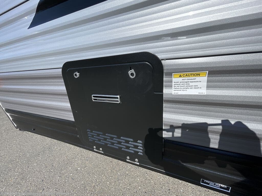 Comfortability, usability, and quality is what you will find in each one of these Forest River Aurora Light travel trailers! They are designed with a superior build and packed full with industry leading, functional, and distinctive standard features. The diamond plate rock guard will protect your unit from road debris and the nitrogen filled radial tires, which keep their pressure longer, offer better fuel economy. You will also find upgraded JBL Elite exterior speaker outside, an electric awning with multicolor lights and remote, plus flush mount baggage doors for easy packing. The interiors are beautifully designed with matte black kitchen and bath faucets, black nightshades in the living room, and GE kitchen appliances!