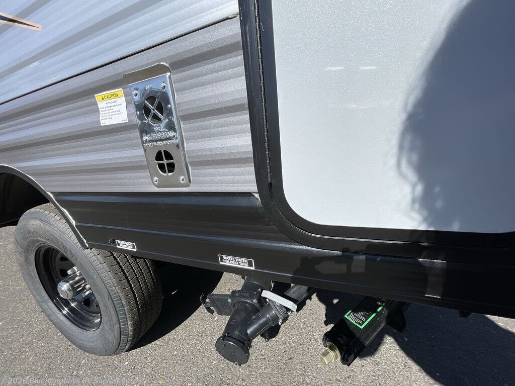 This lightweight travel trailer includes everything you need for comfortable camping trips at the lake. A front queen bed provides a great night's rest, and there is a 60" jack knife sofa for an overnight guest. You'll appreciate the bedroom storage and overhead shelf, along with an overhead shelf with bins over the sofa to keep your space tidy. The rear corner kitchen includes a two burner gas range and microwave oven, and the private bath is conveniently located in the other rear corner!