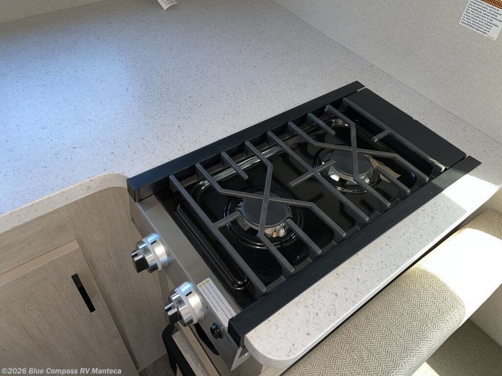 This lightweight travel trailer includes everything you need for comfortable camping trips at the lake. A front queen bed provides a great night's rest, and there is a 60" jack knife sofa for an overnight guest. You'll appreciate the bedroom storage and overhead shelf, along with an overhead shelf with bins over the sofa to keep your space tidy. The rear corner kitchen includes a two burner gas range and microwave oven, and the private bath is conveniently located in the other rear corner!