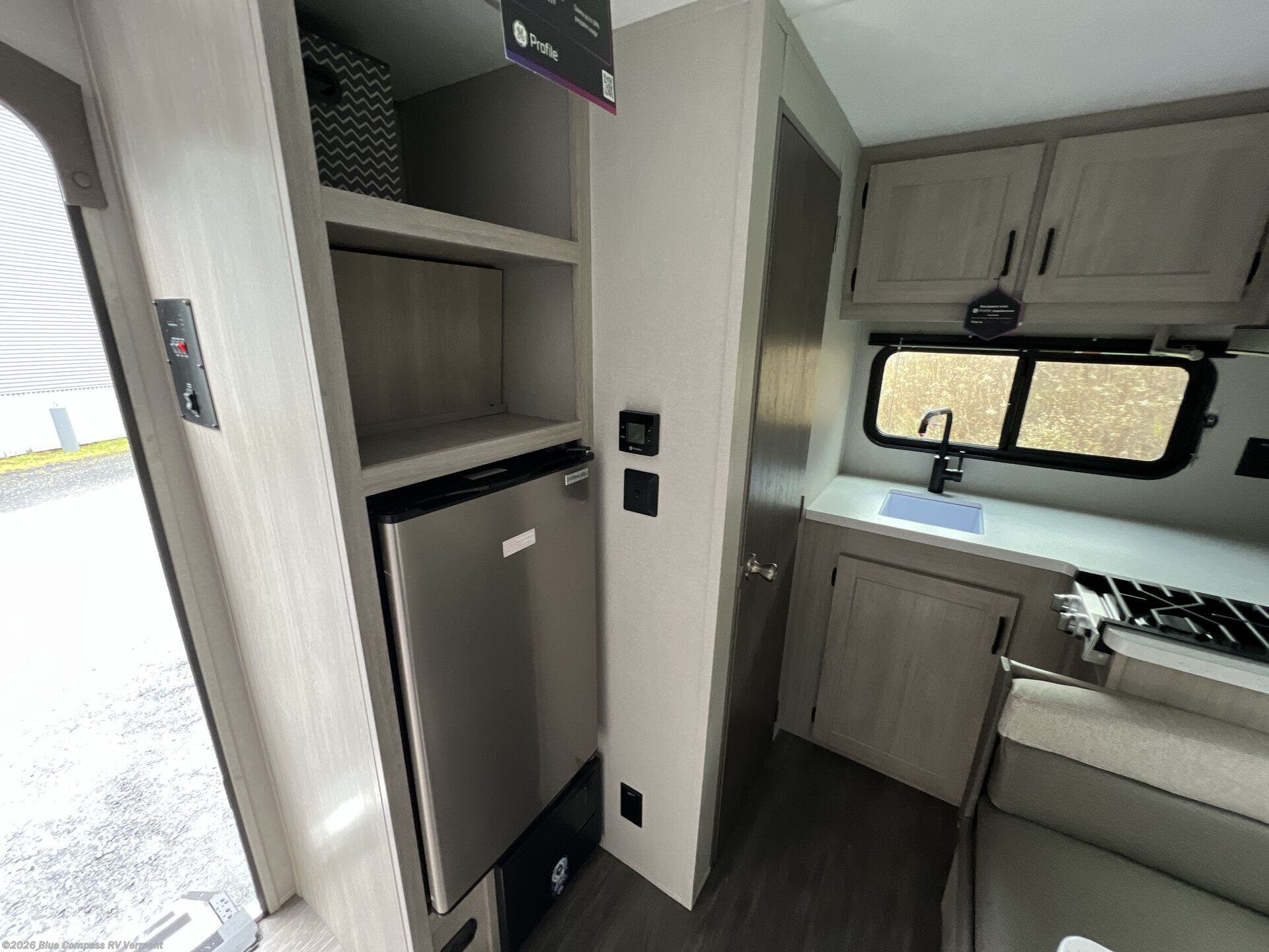 This lightweight travel trailer includes everything you need for comfortable camping trips at the lake. A front queen bed provides a great night's rest, and there is a 60" jack knife sofa for an overnight guest. You'll appreciate the bedroom storage and overhead shelf, along with an overhead shelf with bins over the sofa to keep your space tidy. The rear corner kitchen includes a two burner gas range and microwave oven, and the private bath is conveniently located in the other rear corner!