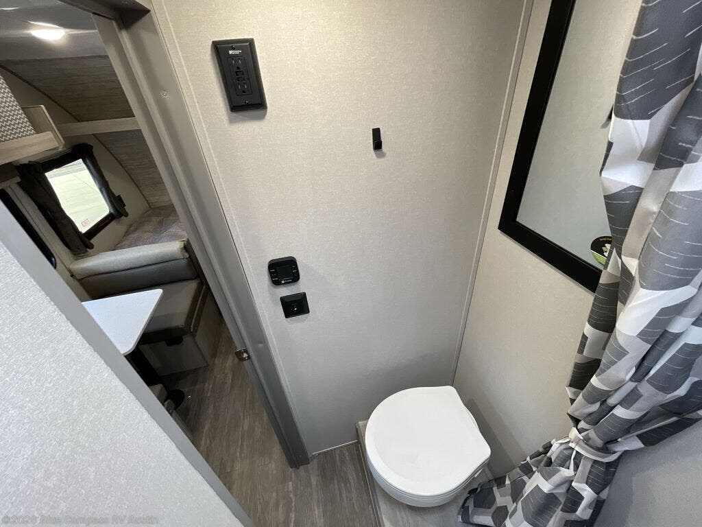 This lightweight travel trailer includes everything you need for comfortable camping trips at the lake. A front queen bed provides a great night's rest, and there is a 60" jack knife sofa for an overnight guest. You'll appreciate the bedroom storage and overhead shelf, along with an overhead shelf with bins over the sofa to keep your space tidy. The rear corner kitchen includes a two burner gas range and microwave oven, and the private bath is conveniently located in the other rear corner!