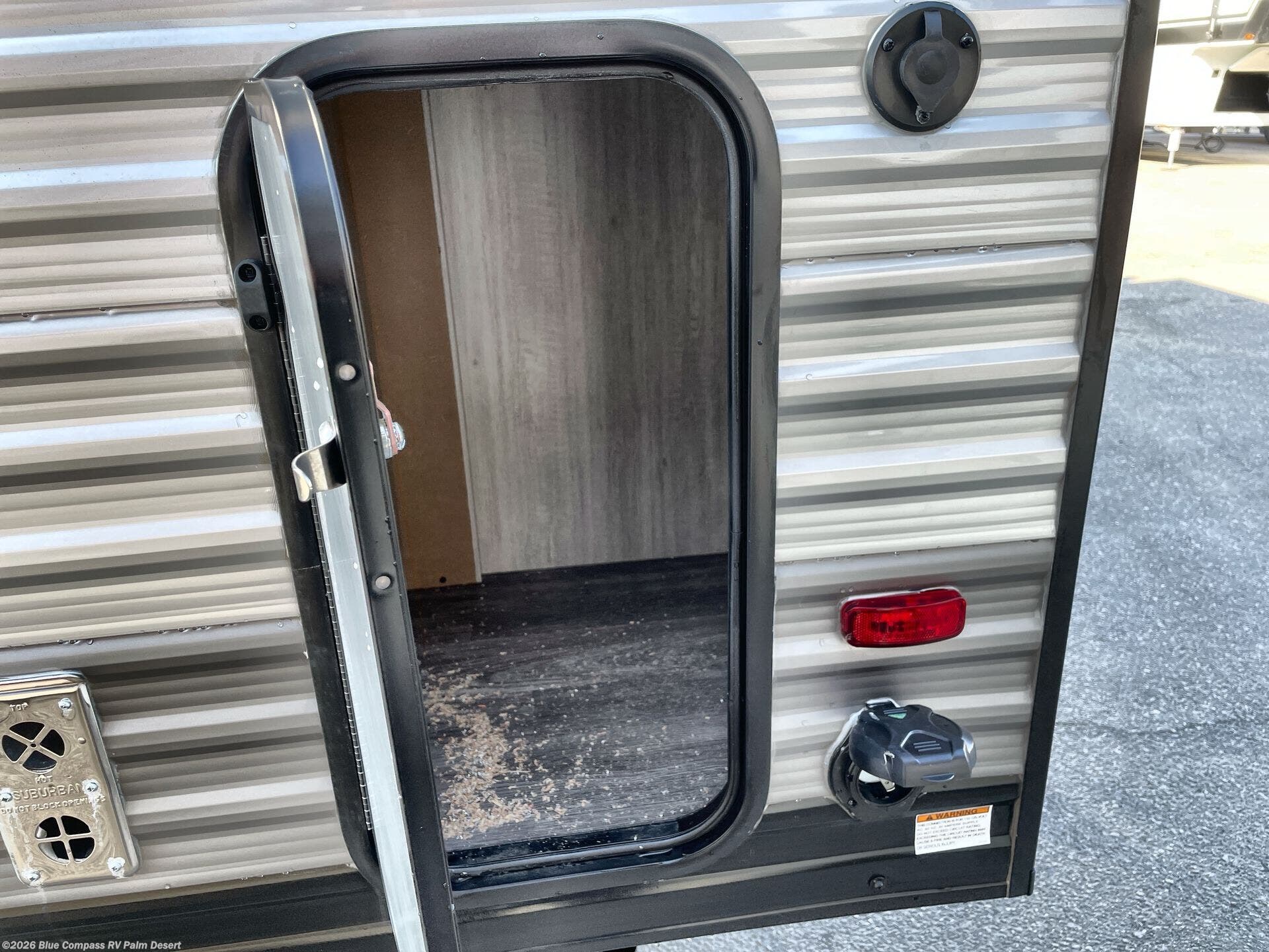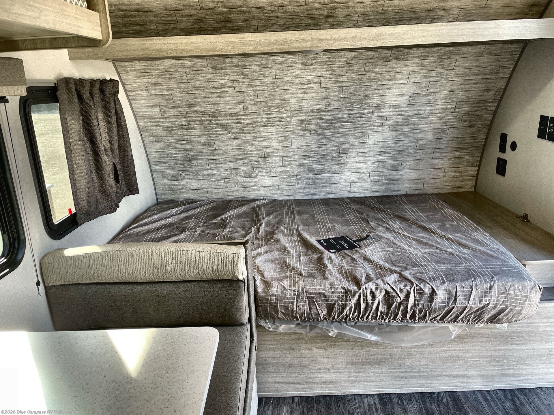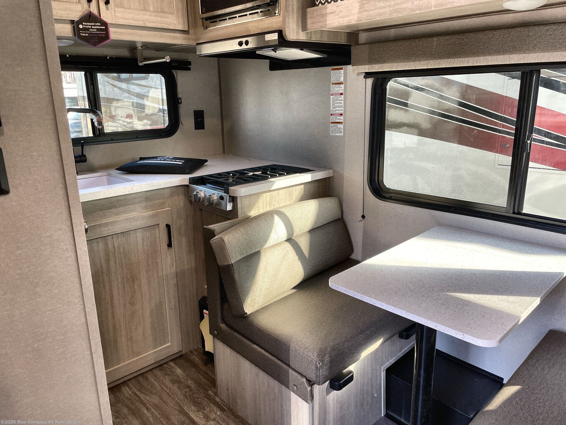 This lightweight travel trailer includes everything you need for comfortable camping trips at the lake. A front queen bed provides a great night's rest, and there is a booth dinette ideal to share meals. You'll appreciate the bedroom storage and overhead shelf, along with an overhead shelf with bins over the sofa to keep your space tidy. The rear corner kitchen includes a two burner gas range and microwave oven, and the private bath is conveniently located in the other rear corner!