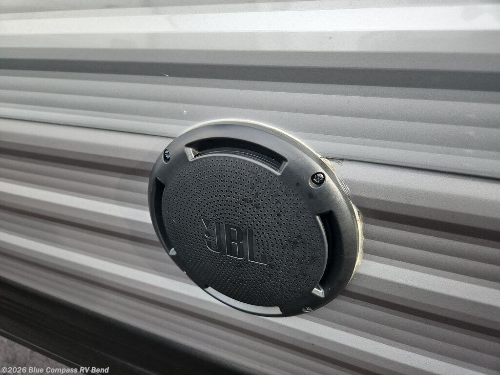 Comfortability, usability, and quality is what you will find in each one of these Forest River Aurora Light travel trailers! They are designed with a superior build and packed full with industry leading, functional, and distinctive standard features. The diamond plate rock guard will protect your unit from road debris and the nitrogen filled radial tires, which keep their pressure longer, offer better fuel economy. You will also find upgraded JBL Elite exterior speaker outside, an electric awning with multicolor lights and remote, plus flush mount baggage doors for easy packing. The interiors are beautifully designed with matte black kitchen and bath faucets, black nightshades in the living room, and GE kitchen appliances!
