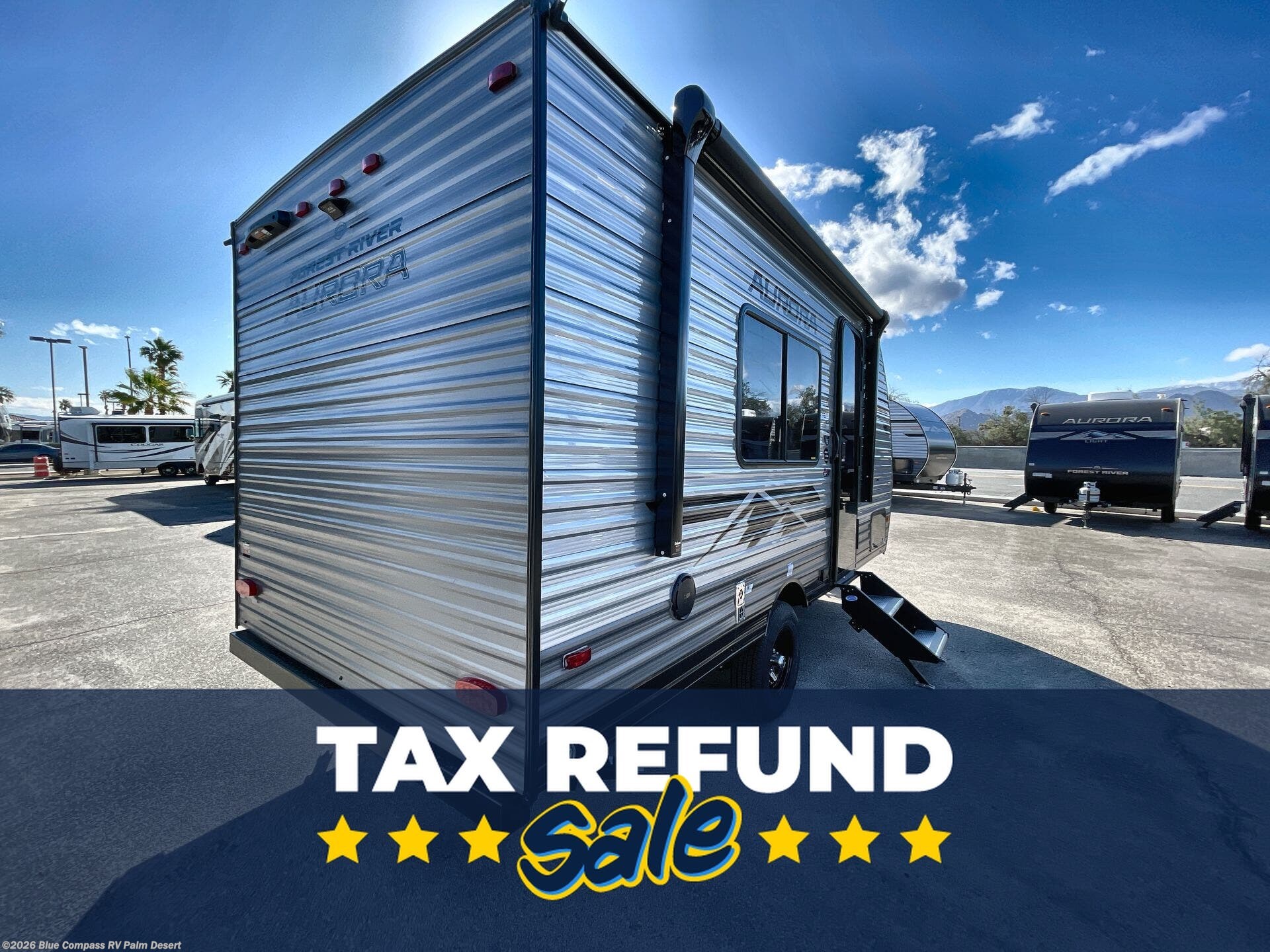 Request More Info on this 2026 Forest River Aurora Light 15RBX Offered for sale by Blue Compass RV Palm Desert