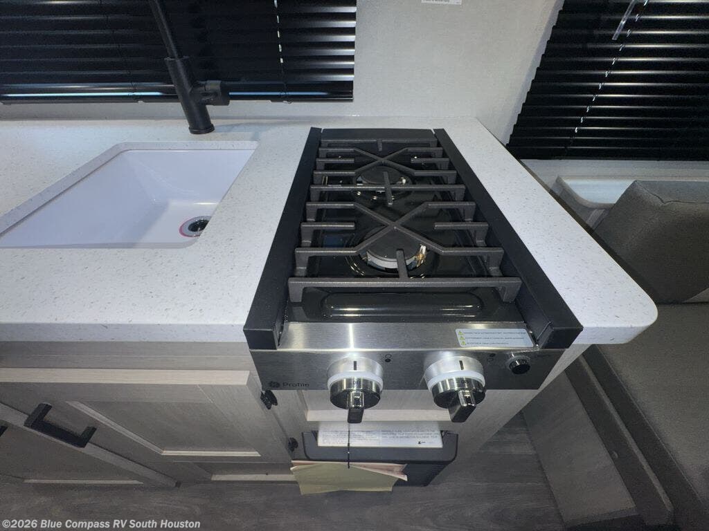 You will enjoy every adventure in this travel trailer for two to four! You will have a queen bed up front to sleep on each night, and the rear U-shaped dinette can easily be folded down to create additional sleeping for one or two more depending on size. Use the two burner cooktop and microwave oven to create meals inside. A centrally located bathroom is easily accessible from the entry and features a 36" x 30" shower, toilet, and mirror plus storage shelf. You also have an 11' electric awning on the outside with multi-colored lights with remote to select from depending on your mood, and exterior storage in front for all of your camp chairs and outdoor gear, plus more!