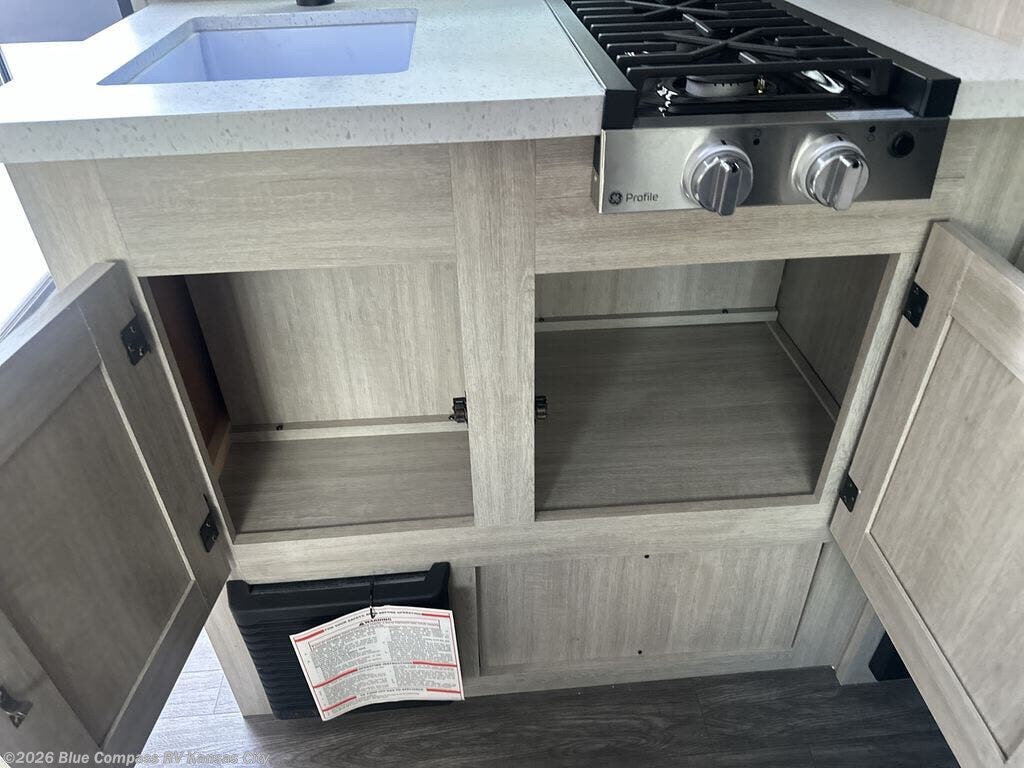 Comfortability, usability, and quality is what you will find in each one of these Forest River Aurora Light travel trailers! They are designed with a superior build and packed full with industry leading, functional, and distinctive standard features. The diamond plate rock guard will protect your unit from road debris and the nitrogen filled radial tires, which keep their pressure longer, offer better fuel economy. You will also find upgraded JBL Elite exterior speaker outside, an electric awning with multicolor lights and remote, plus flush mount baggage doors for easy packing. The interiors are beautifully designed with matte black kitchen and bath faucets, black nightshades in the living room, and GE kitchen appliances!