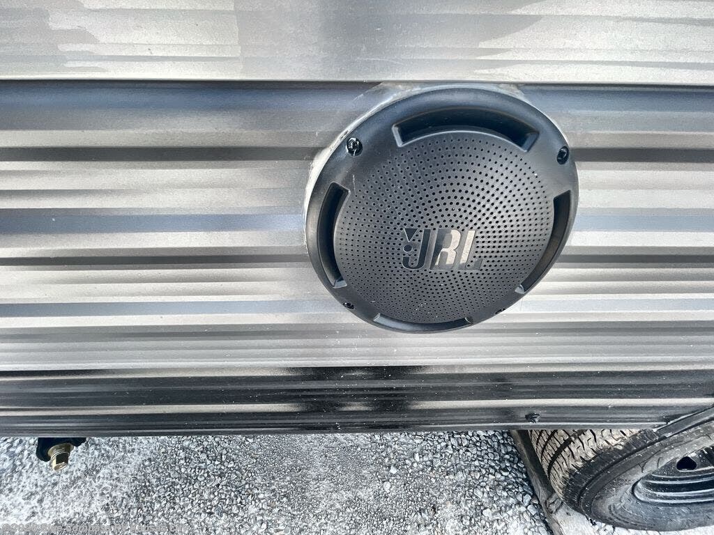 Comfortability, usability, and quality is what you will find in each one of these Forest River Aurora Light travel trailers! They are designed with a superior build and packed full with industry leading, functional, and distinctive standard features. The diamond plate rock guard will protect your unit from road debris and the nitrogen filled radial tires, which keep their pressure longer, offer better fuel economy. You will also find upgraded JBL Elite exterior speaker outside, an electric awning with multicolor lights and remote, plus flush mount baggage doors for easy packing. The interiors are beautifully designed with matte black kitchen and bath faucets, black nightshades in the living room, and GE kitchen appliances!
