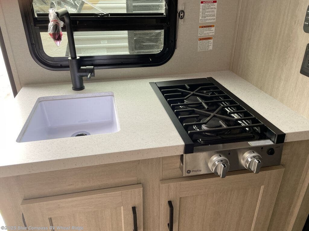 Comfortability, usability, and quality is what you will find in each one of these Forest River Aurora Light travel trailers! They are designed with a superior build and packed full with industry leading, functional, and distinctive standard features. The diamond plate rock guard will protect your unit from road debris and the nitrogen filled radial tires, which keep their pressure longer, offer better fuel economy. You will also find upgraded JBL Elite exterior speaker outside, an electric awning with multicolor lights and remote, plus flush mount baggage doors for easy packing. The interiors are beautifully designed with matte black kitchen and bath faucets, black nightshades in the living room, and GE kitchen appliances!