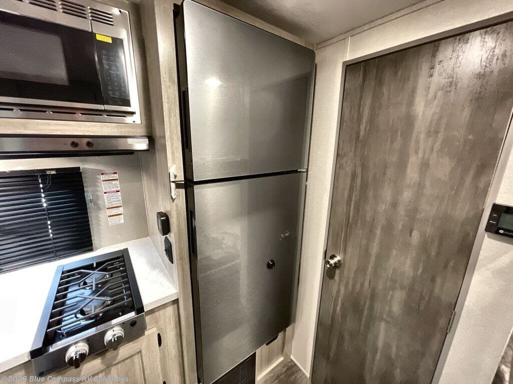 Comfortability, usability, and quality is what you will find in each one of these Forest River Aurora Light travel trailers! They are designed with a superior build and packed full with industry leading, functional, and distinctive standard features. The diamond plate rock guard will protect your unit from road debris and the nitrogen filled radial tires, which keep their pressure longer, offer better fuel economy. You will also find upgraded JBL Elite exterior speaker outside, an electric awning with multicolor lights and remote, plus flush mount baggage doors for easy packing. The interiors are beautifully designed with matte black kitchen and bath faucets, black nightshades in the living room, and GE kitchen appliances!