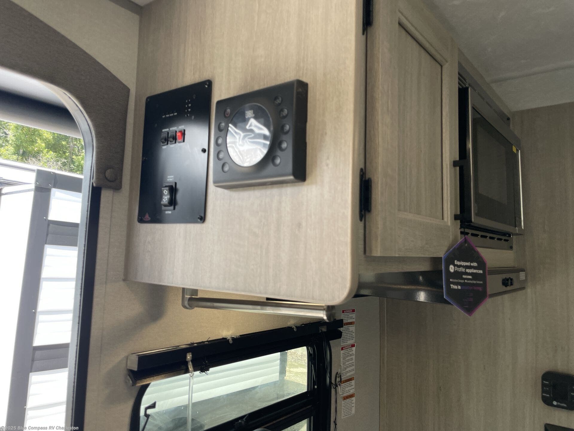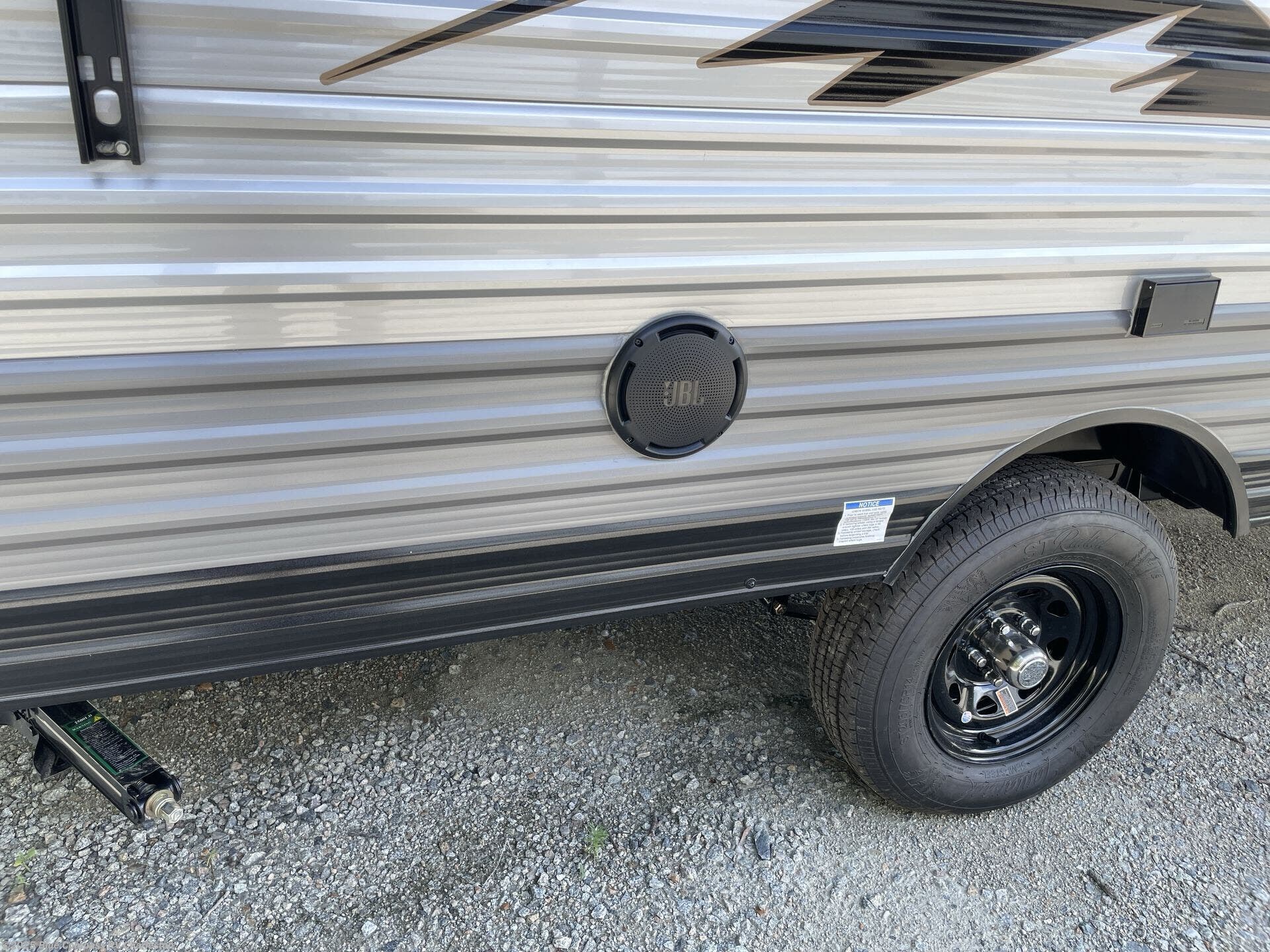 Comfortability, usability, and quality is what you will find in each one of these Forest River Aurora Light travel trailers! They are designed with a superior build and packed full with industry leading, functional, and distinctive standard features. The diamond plate rock guard will protect your unit from road debris and the nitrogen filled radial tires, which keep their pressure longer, offer better fuel economy. You will also find upgraded JBL Elite exterior speaker outside, an electric awning with multicolor lights and remote, plus flush mount baggage doors for easy packing. The interiors are beautifully designed with matte black kitchen and bath faucets, black nightshades in the living room, and GE kitchen appliances!