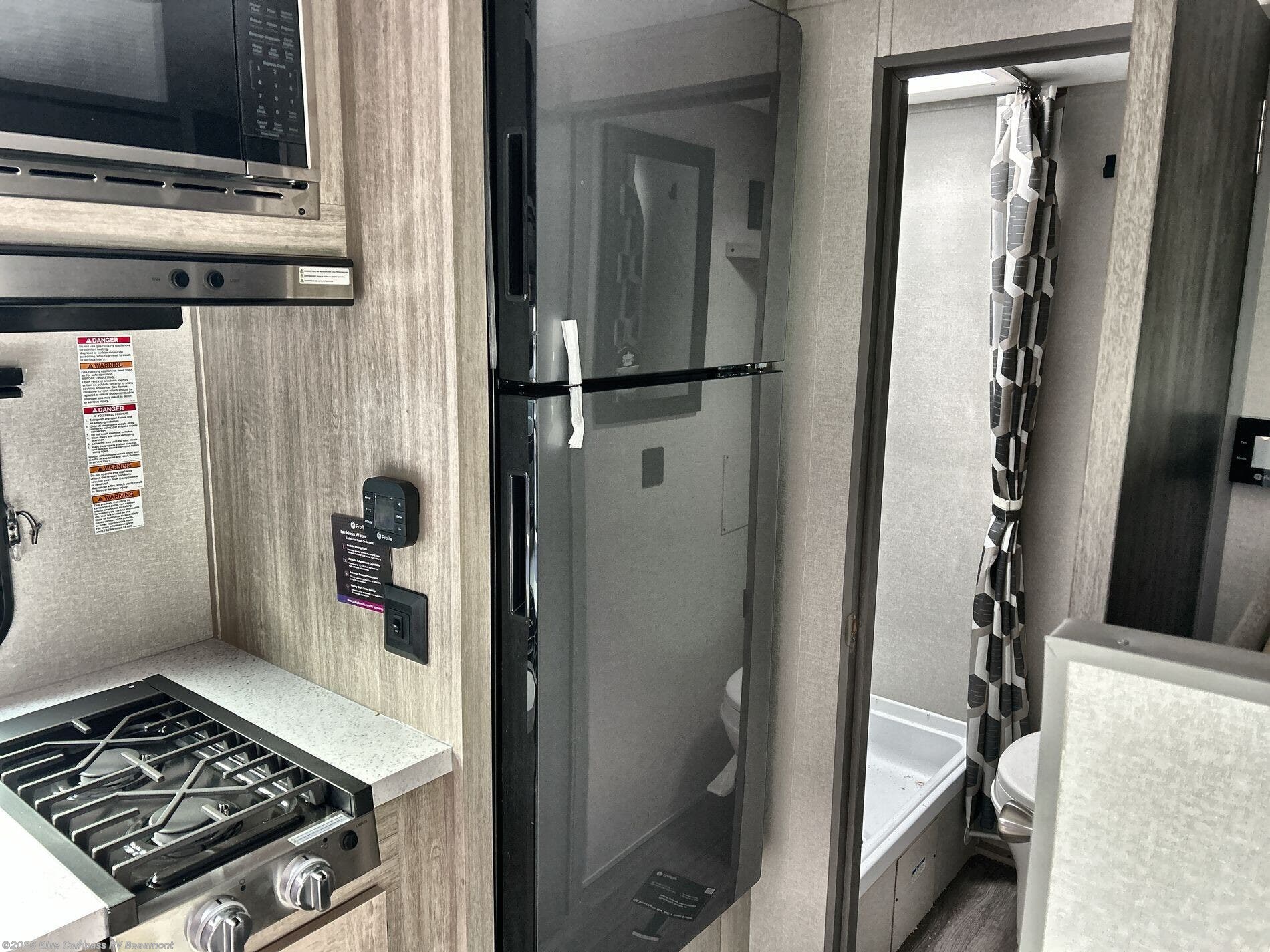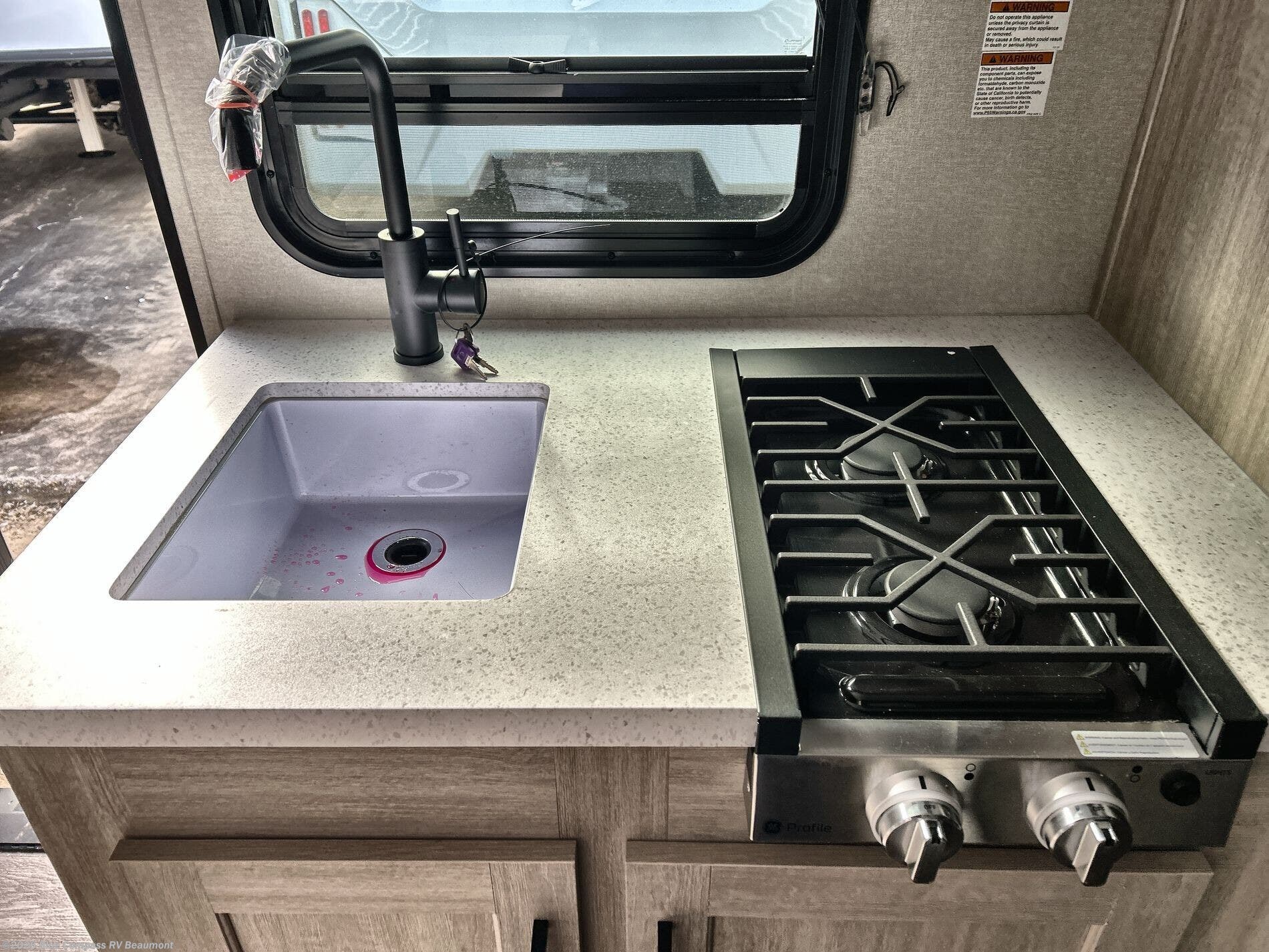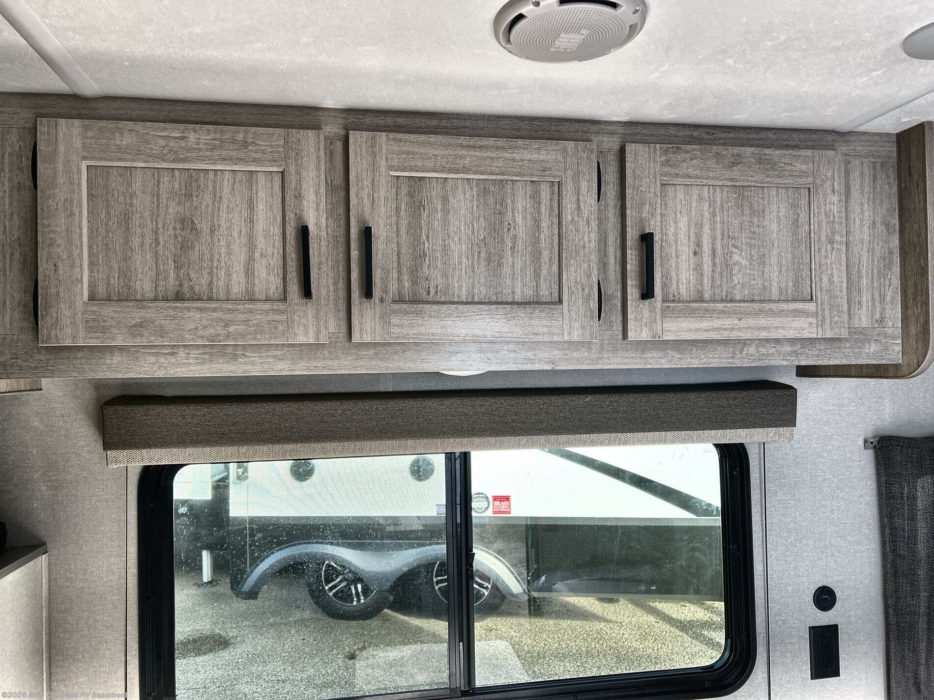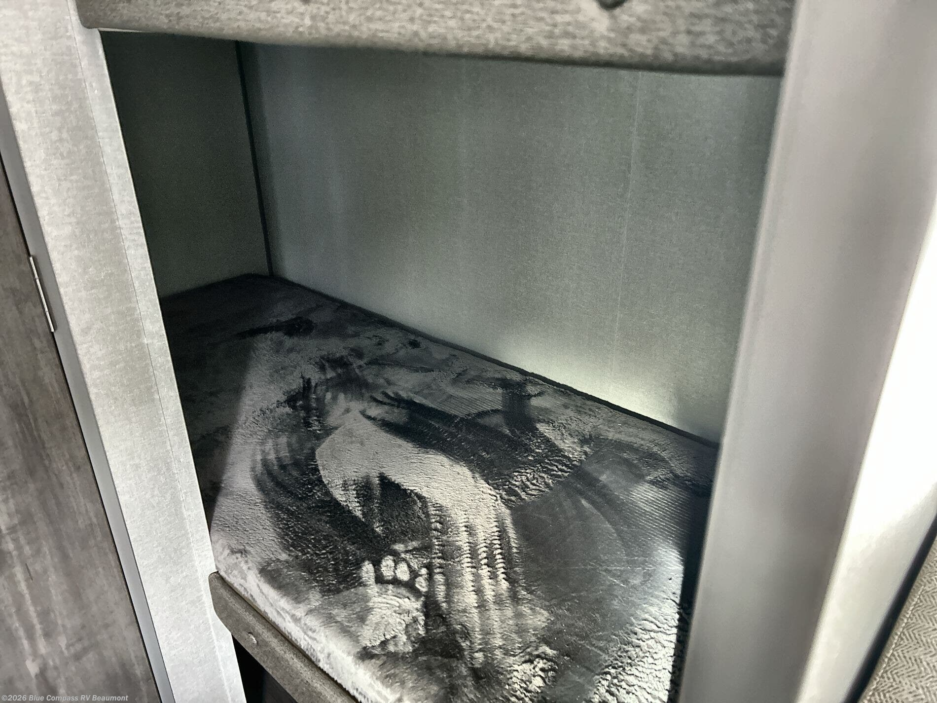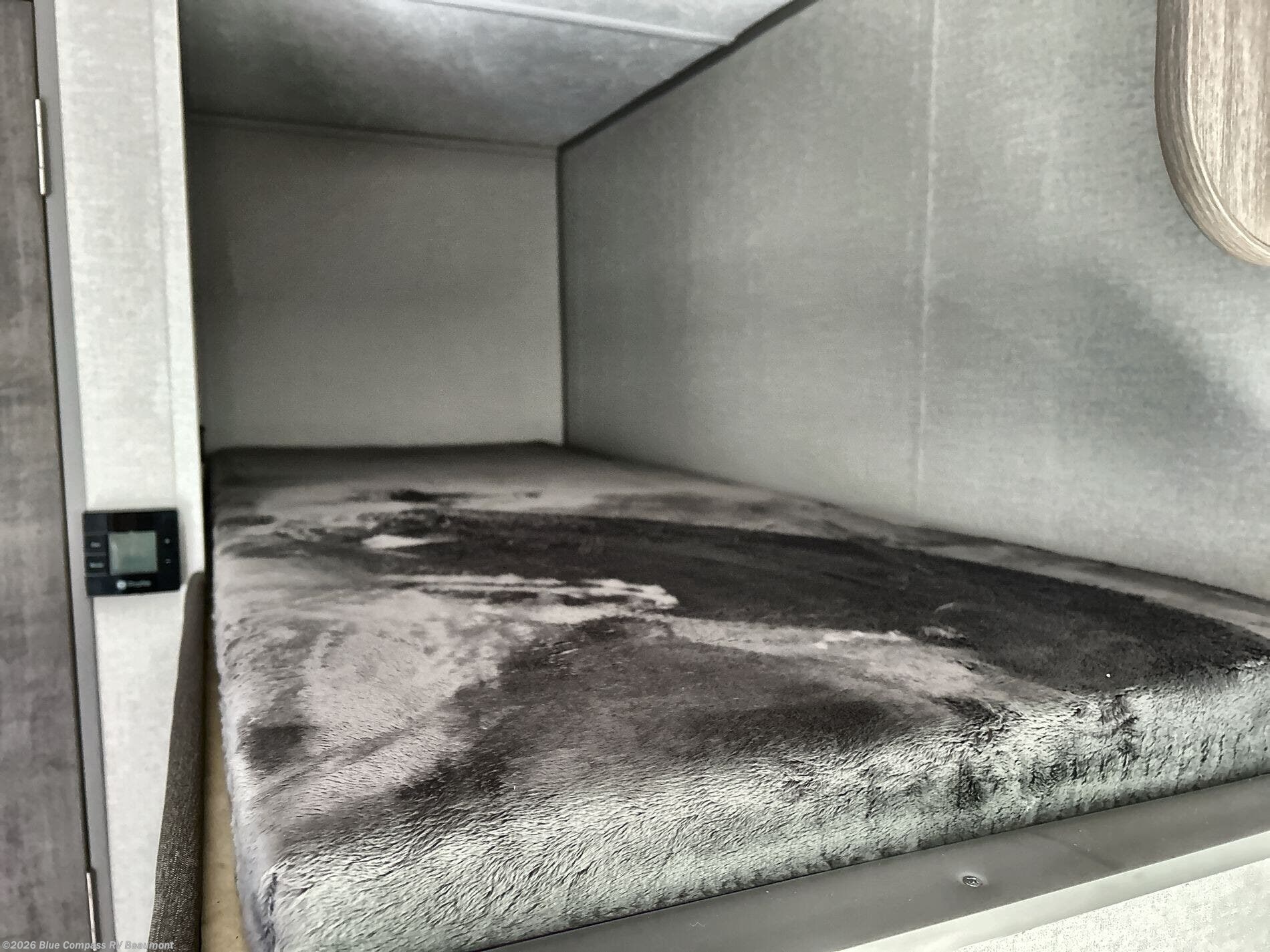 This cozy travel trailer can sleep five, so pack up and head out! You will have a queen bed up front to sleep on each night instead of an air mattress, and the little ones can take the 28" x 70" bunk beds! There is also a 60" sofa here that can sleep an additional guest and is perfect for relaxing during the day. The two burner cooktop and microwave oven means you won't have to cook over a campfire, and the private toilet and shower lets you clean up after a day outdoors. This model includes plenty of storage space, including bedroom storage, an exterior pass-through, plus additional outside storage beneath the bunks for hiking gear!