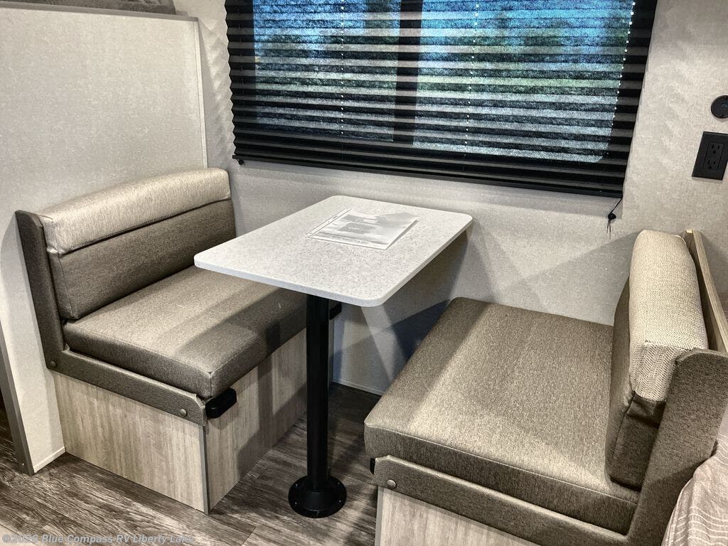 Comfortability, usability, and quality is what you will find in each one of these Forest River Aurora Light travel trailers! They are designed with a superior build and packed full with industry leading, functional, and distinctive standard features. The diamond plate rock guard will protect your unit from road debris and the nitrogen filled radial tires, which keep their pressure longer, offer better fuel economy. You will also find upgraded JBL Elite exterior speaker outside, an electric awning with multicolor lights and remote, plus flush mount baggage doors for easy packing. The interiors are beautifully designed with matte black kitchen and bath faucets, black nightshades in the living room, and GE kitchen appliances!