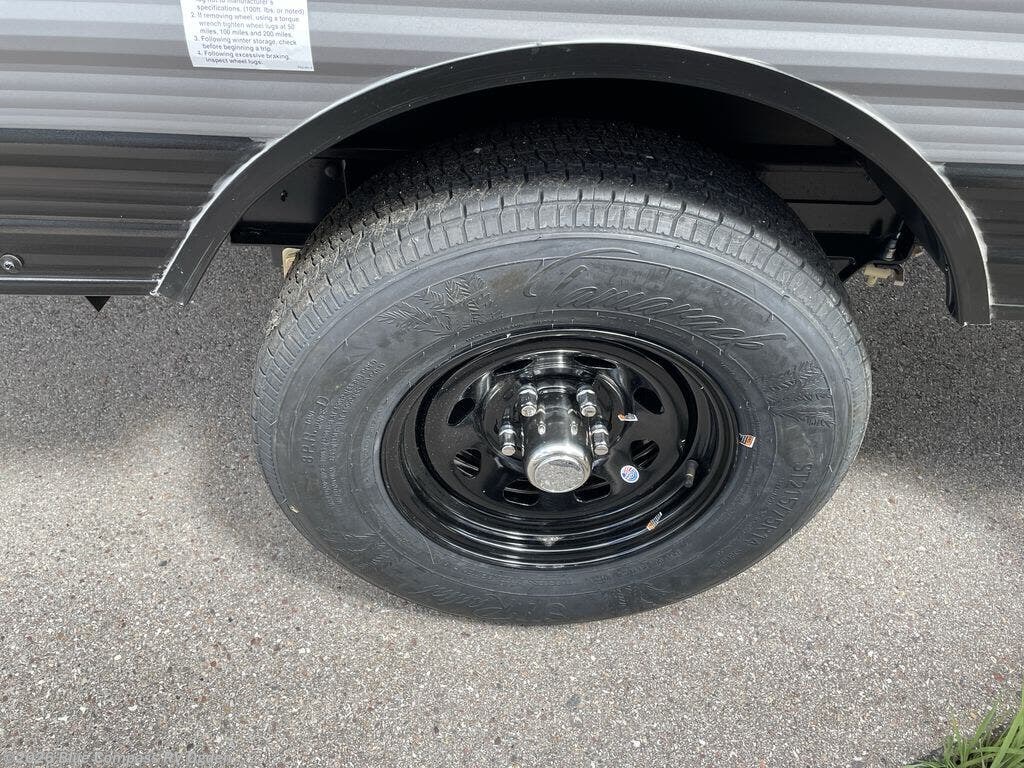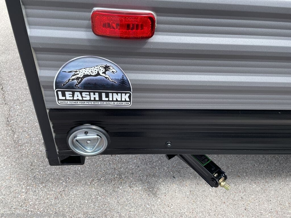 This cozy travel trailer can sleep five, so pack up and head out! You will have a queen bed up front to sleep on each night instead of an air mattress, and the little ones can take the 28" x 70" bunk beds! There is also a booth dinette here that can sleep an additional guest and is perfect for sharing meals during the day. The two burner cooktop and microwave oven means you won't have to cook over a campfire, and the private toilet and shower lets you clean up after a day outdoors. This model includes plenty of storage space, including bedroom storage, an exterior pass-through, plus additional outside storage beneath the bunks for hiking gear!