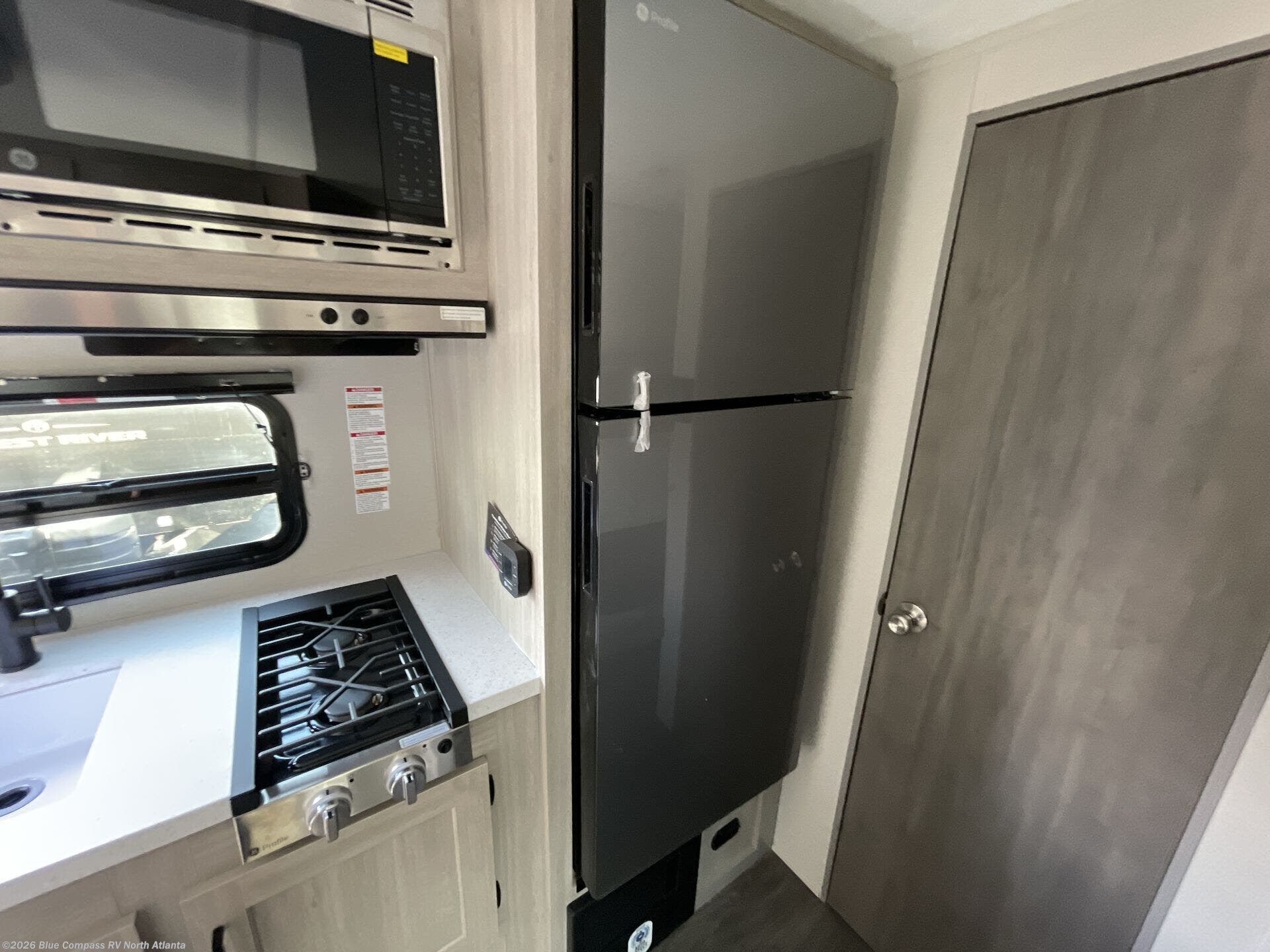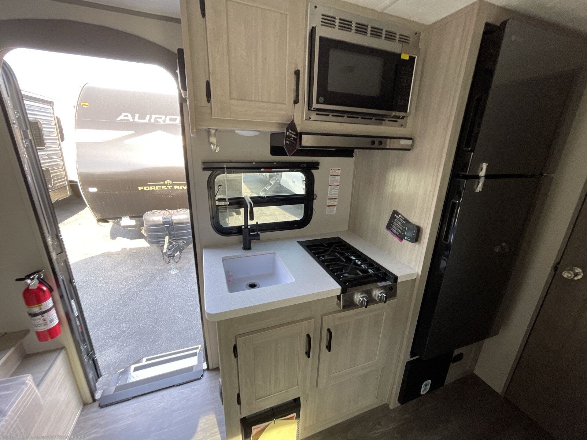 Comfortability, usability, and quality is what you will find in each one of these Forest River Aurora Light travel trailers! They are designed with a superior build and packed full with industry leading, functional, and distinctive standard features. The diamond plate rock guard will protect your unit from road debris and the nitrogen filled radial tires, which keep their pressure longer, offer better fuel economy. You will also find upgraded JBL Elite exterior speaker outside, an electric awning with multicolor lights and remote, plus flush mount baggage doors for easy packing. The interiors are beautifully designed with matte black kitchen and bath faucets, black nightshades in the living room, and GE kitchen appliances!